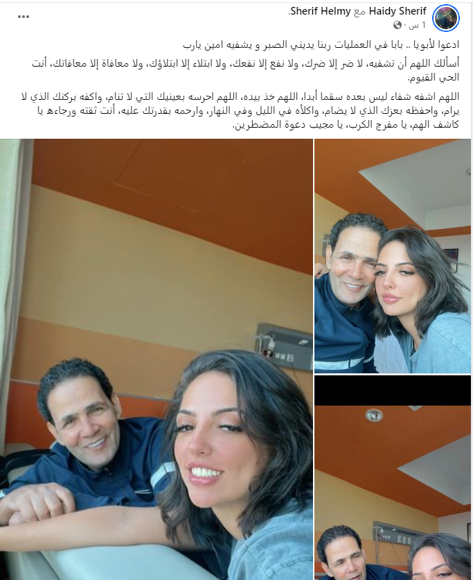 نشرت هايدى ابنة الفنان شريف حلمى تعليقا عبر صفحتها على موقع التواصل الاجتماعى فيسبوك تعلن عن دخول والدها العمليات حيث يجرى عملية جراحية وتطلب الدعاء له.