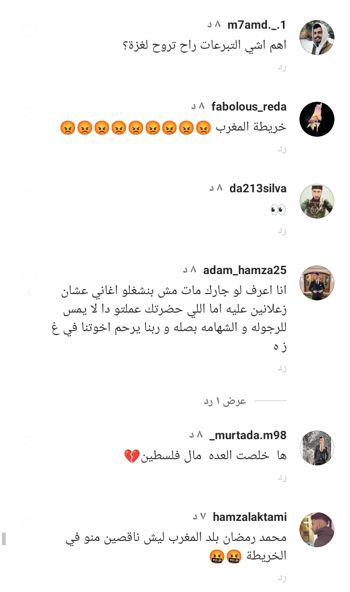 وعلق أحد المتابعين قائلا: “ناس بتغني وناس بتموت”، فيما علق آخر: "الثبات للصادقين يا نجم. غزة لسه بتضرب".