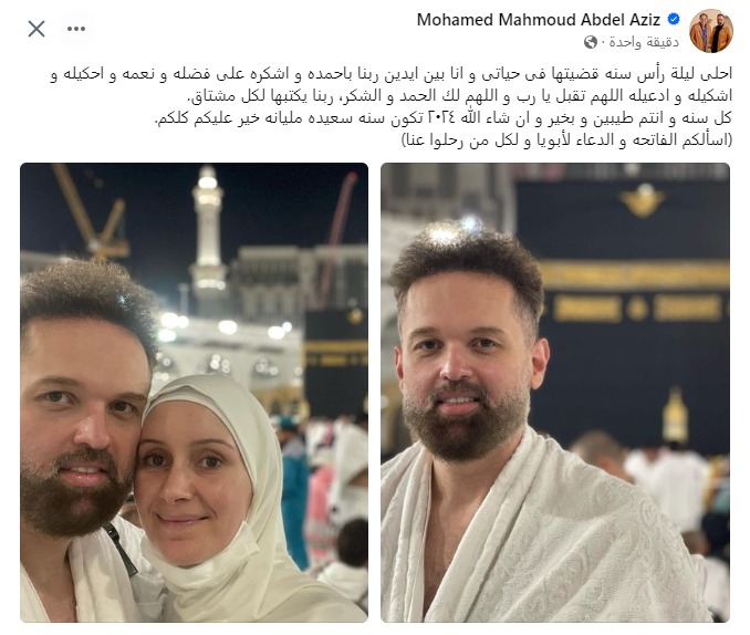 ونشر محمد محمود عبد العزيز، صور تجمعه بزوجته من العمرة، حيث كتب قائلًا: أحلى ليلة رأس سنة قضيتها في حياتي، وأنا بين إيدين ربنا باحمده واشكره على فضله ونعمه واحكيله واشكيله وادعيله، اللهم تقبل يارب واللهم لك الحمد والشكر، ربنا يكتبها لكل مشتاق.