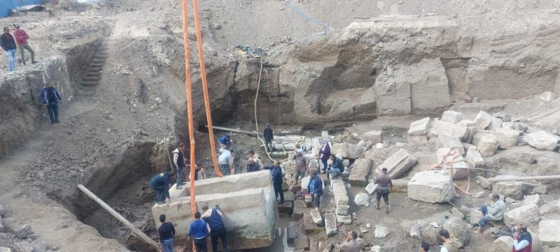 تابوت أثري يعطل العمل بمشروع إنشاء مستشفي بنها الجديد.. والآثار تبدأ في نقله