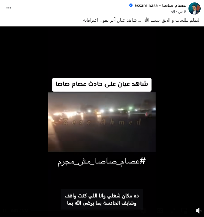ونشر عصام صاصا عبر صفحته الرسمية بموقع التواصل الاجتماعي فيسبوك فيديو، وعلق عليه قائلًا: الظلم ظلمات والحق حبيب الله شاهد عيان آخر يقول اعترافاته.