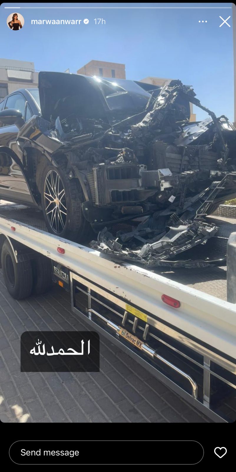 مروة أنور تتعرض لحادث سير وتنجو من الموت بعد تحط سيارتها