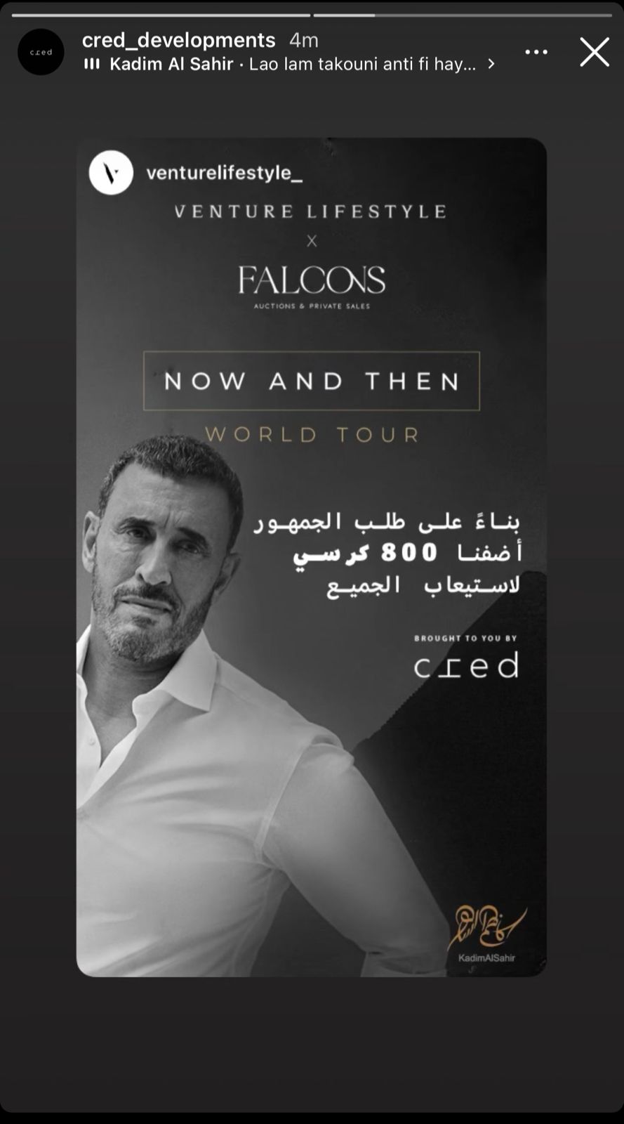 وكتبت الشركة المنظمة للحفل، عبر خاصية ستورى على حسابها الرسمي بموقع تبادل الصور والفيديوهات إنستجرام: بناءً على طلب الجمهور أضفنا 800 كرسي لاستيعاب الجمهور.