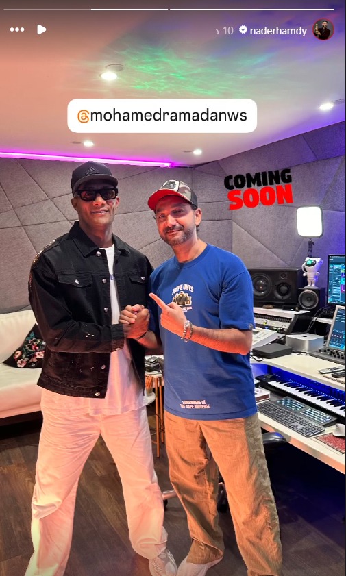 شوّق الموزع الموسيقي نادر حمدي متابعيه لعمل فني جديد، يجمعه بـ الفنان محمد رمضان، إلا أنه لم يكشف تفاصيل هذا التعاون، حيث اكتفى بنشر صورة تجمعهما يشوق فيها جمهوره لتعاونهما الجديد.
