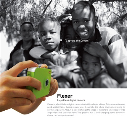 ابتكر المصمم كيم مينسون كاميرا Flexer الرقمية ذات العدسات المرنة، التي استخدم في صنعها عدسات السيليكون السائلة التي تتيح لمستخدمها التقاط صورة للبيئة الموجودة حوله بأكملها باستخدام زاوية مشاهدتها الطبيعية.