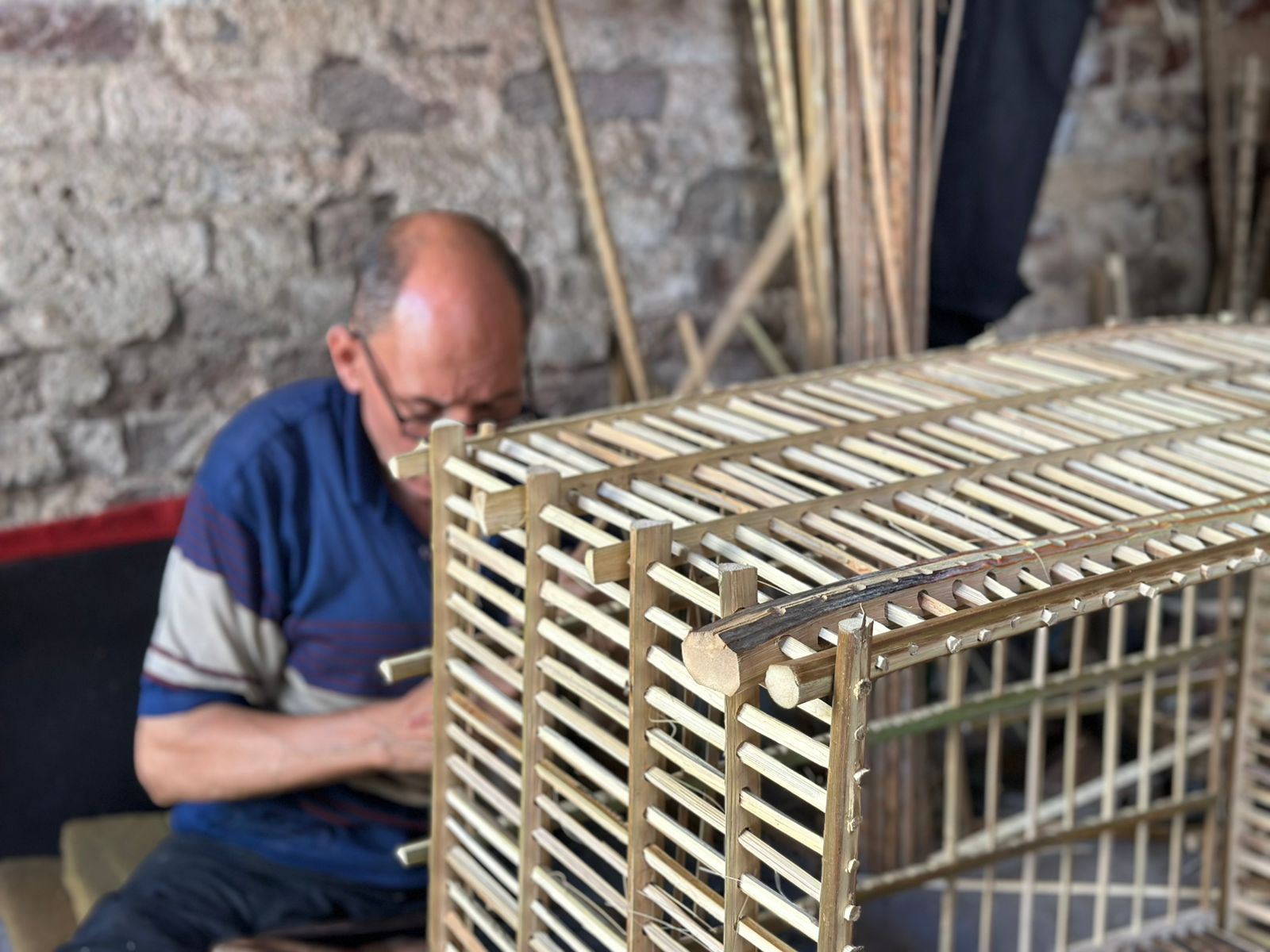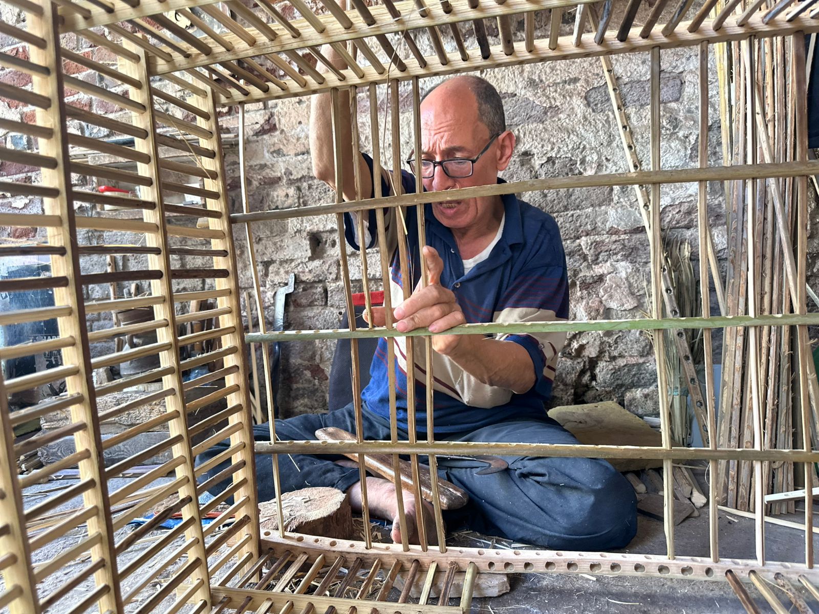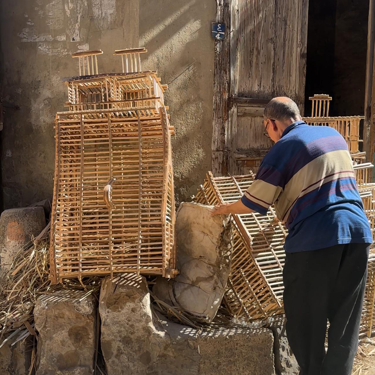 وأضاف القفاص "خميس محمد فضل" وهو الشقيق الأصغر: أنا وشقيقي محمد لم نكمل تعليمنا، بل تتلمذنا وغرقنا في بحر حرفتنا لصناعة الأقفاص، نذهب سويًا إلى الورشة في الصباح الباكر ونظل نعمل حتى السابعة مساءًا دون راحة، مهنة صعبة وتحتاج إلى تركيز، وتحتاج إلى مقاسات وتعديل في الجريد، ولكننا مع الخبرة أصبحت أعيننا وأيدينا كالمسطرة والميزان، نأتي أولاً بجريد النخل ونقوم بتقطيعه على حسب المطلوب وكل هذا يدويا دون تدخل الماكينات.