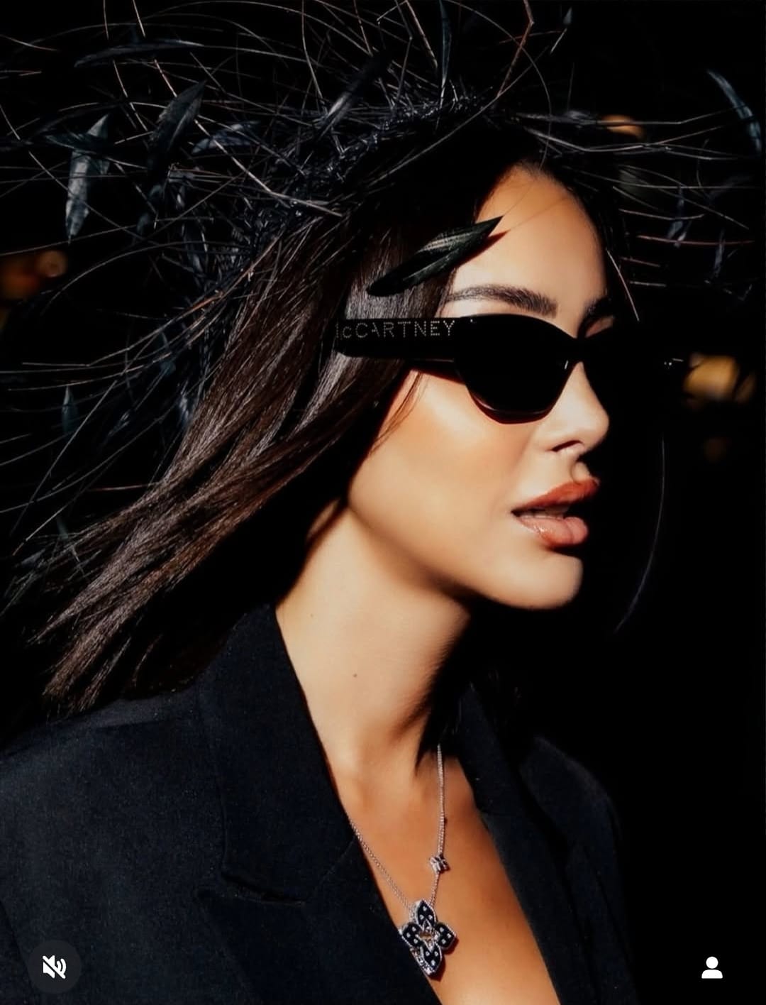 وخطفت حسناء الغناء بسة بوسيل الأنظار بإطلالتها الأنيقة حيث ارتدت بدلة سوداء كلاسيكية عكست حضورا قويا ولمسة من الفخامة، ونسقتها مع نظارة شمسية سوداء كبيرة منحتها مظهرا غامضا وجريئا، وزادت الإطلالة تميزا بإكسسوار رأس فاخر يزينه الريش الأسود، في لمسة درامية توحي بأجواء عروض الأزياء الراقية، أما القلادة البسيطة فكانت كافية لتضيف لمسة أنثوية رقيقة، في حين جاء المكياج البرونزي البراق وتسريحة الشعر المنسدلة ليكملا المظهر بكامل الأناقة والثقة.