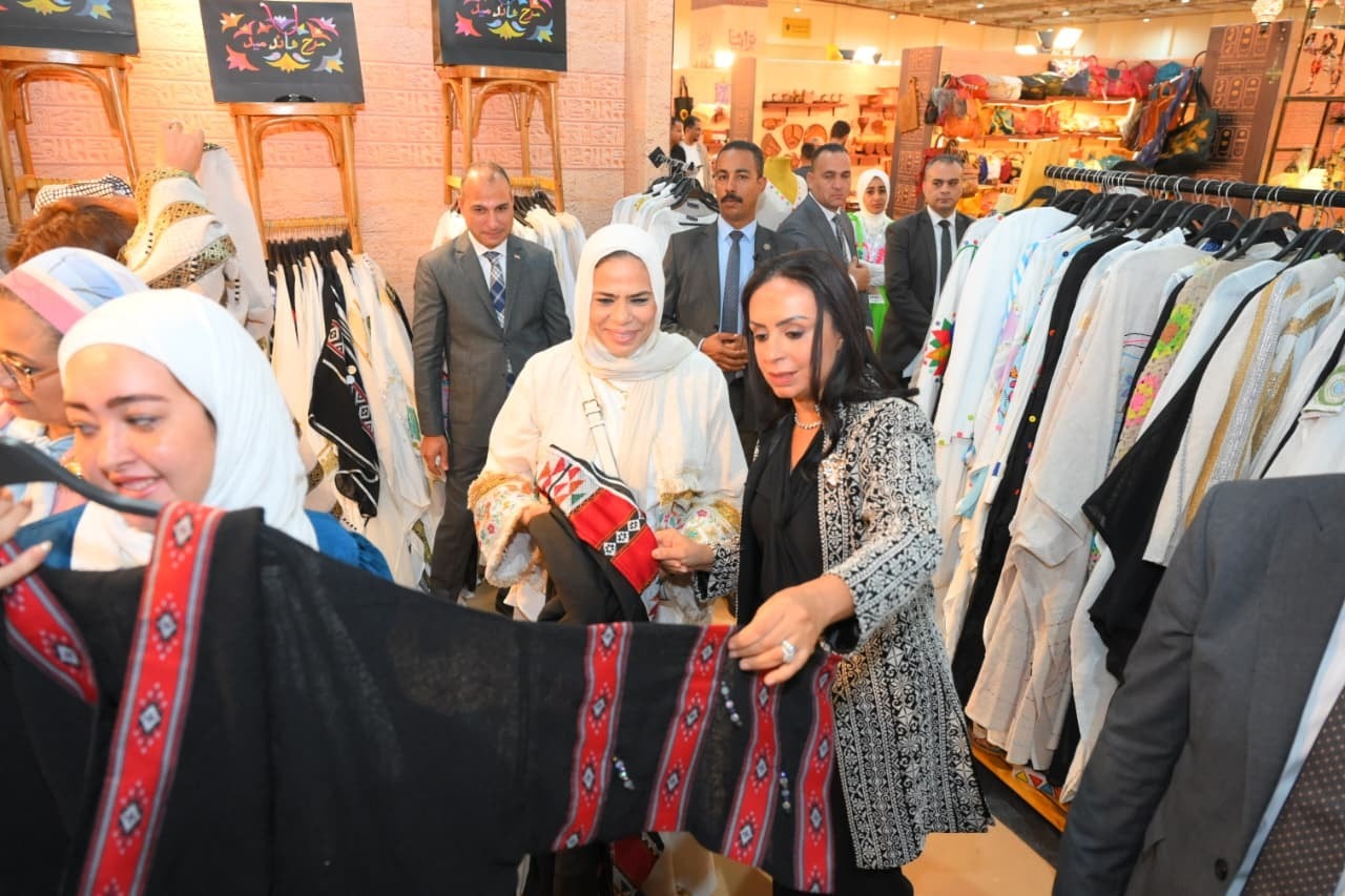 وزيرة التضامن الاجتماعي تتفقد جناح صندوق ”دعم الصناعات الريفية والبيئية ” المشارك في معرض ”تراثنا ”