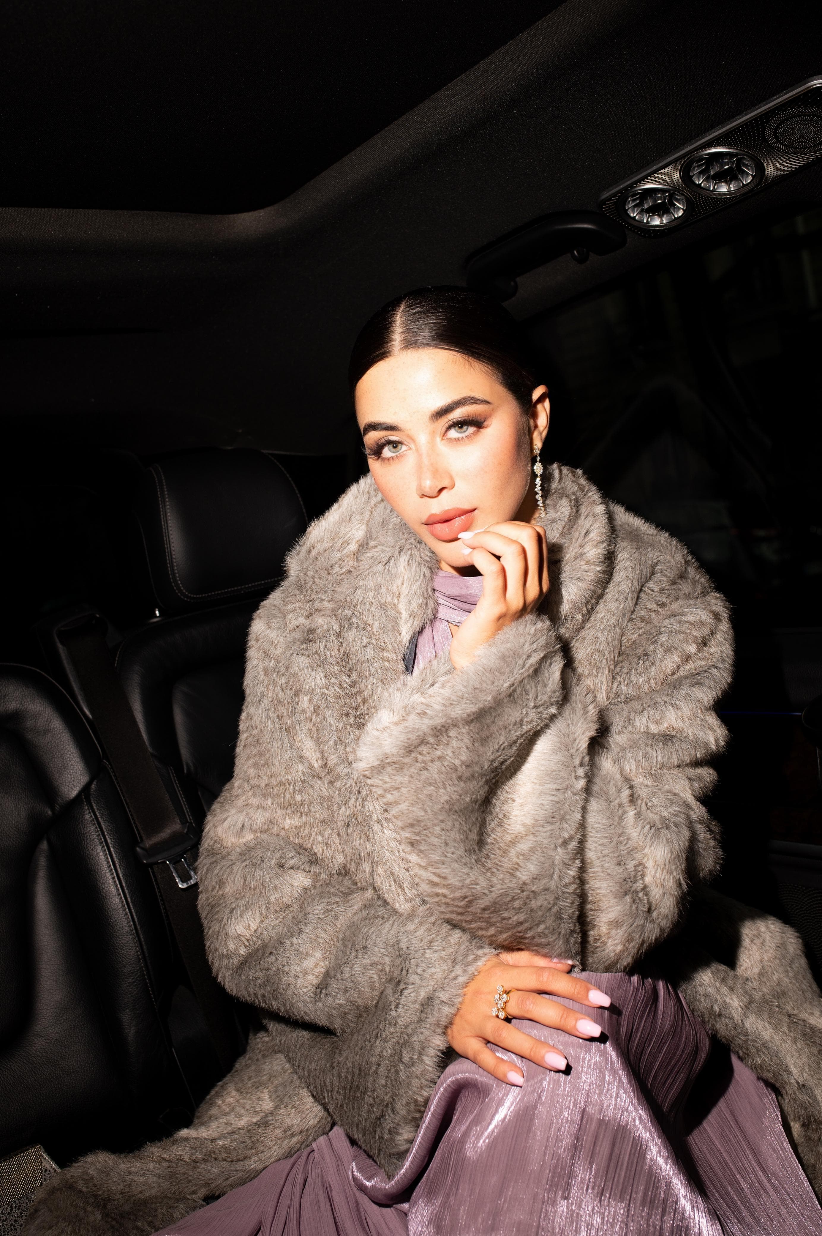 ظهرت يارا السكري خلال العرض بفستان ملكي باللون الخزامي تميز بتصميمه الناعم والبسيط، فيما أضفى المكياج الهادئ مزيداً من الجمال والرقة على ملامحها، لتجسد مزيجاً متناغماً بين الأناقة العالمية والجمال العربي الأصيل، ما جعلها محط أنظار الحاضرين وعدسات المصورين.