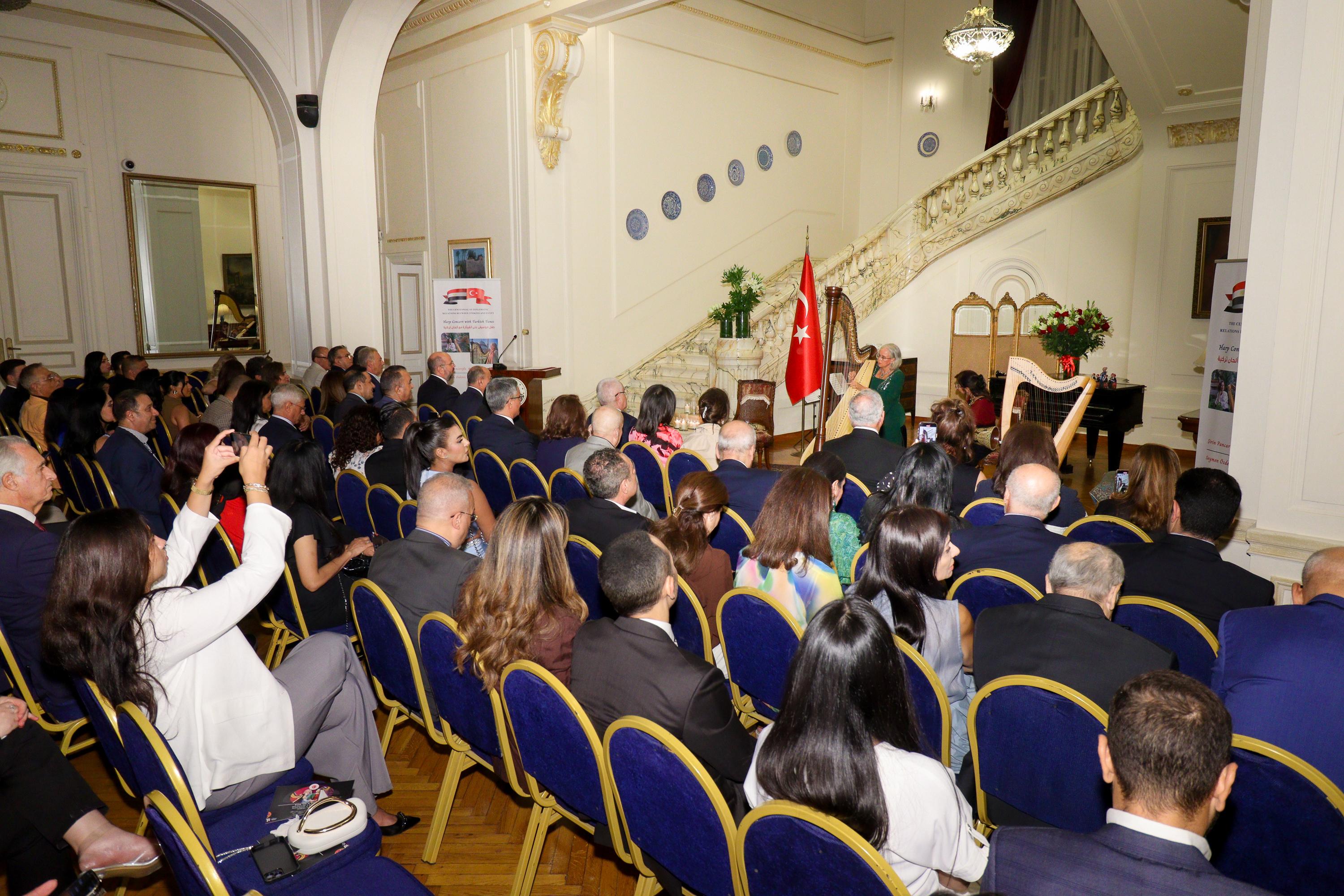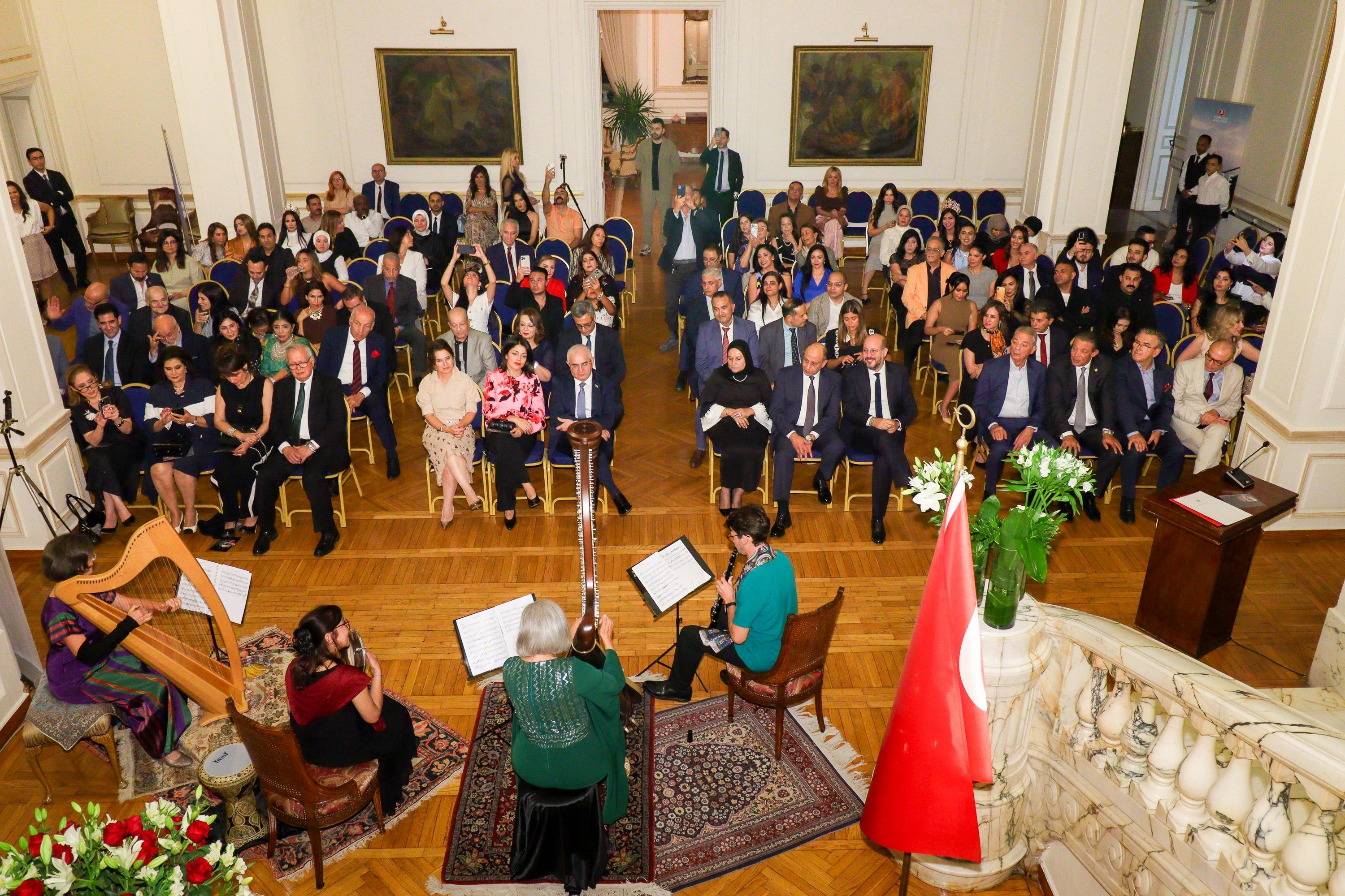 أُقيم حفل موسيقي على القيثارة في السفارة التركية بالقاهرة، إحتفالاً بالذكرى المئوية لتأسيس العلاقات الدبلوماسية بين تركيا ومصر. شارك في الحفل عازفو القيثارة الأتراك والمصريون، وقدموا حفلاً موسيقياً رائعاً.