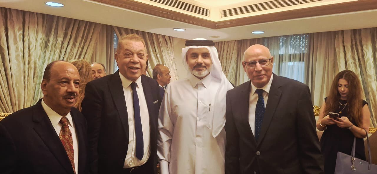 السفير القطري يتوسط النائب أسامة شرشر والسفير رشيد خطابي والصحفي عاطف سليمان