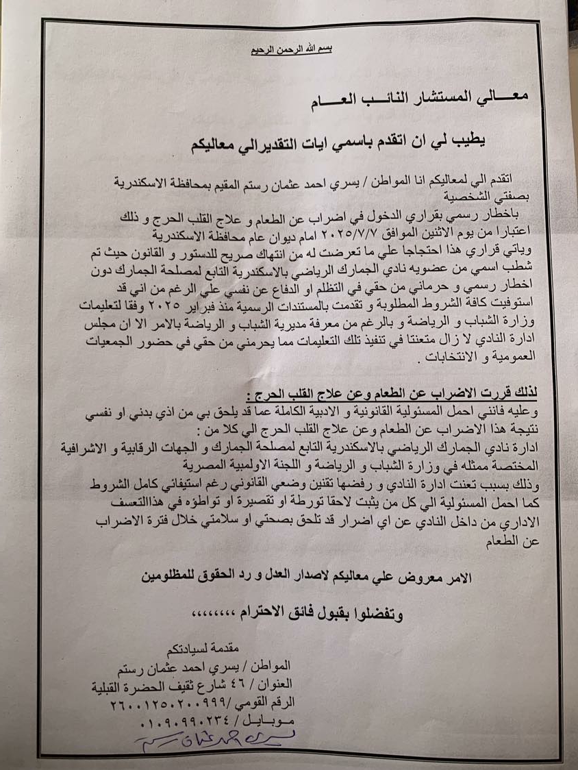 وتابع: تقدمنا بشكاوي لجميع الجهات الرسمية وأثبتنا المؤامرة التي حدثت وطالبنا بحقنا في العودة لنادينا، وبالفعل أصدرت وزارة الشباب والرياضة قرارا في فبراير 2025 بتقنين الأوضاع وتسجيل أسمائنا في كشوف الجمعية العمومية، لكن مجلس إدارة النادي يتجاهل التنفيذ لغلق الجمعية العمومية وتضييع حقنا في حضور الانتخابات القادمة، حتى يضمنون الاستمرار في أماكنهم.