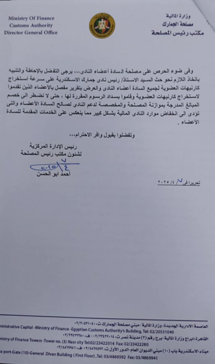 فضيحة تهز الإسكندرية| شطب آلاف الأعضاء من نادي الجمارك الرياضي.. وزارة الشباب تتدخل والإدارة تتجاهل القرار