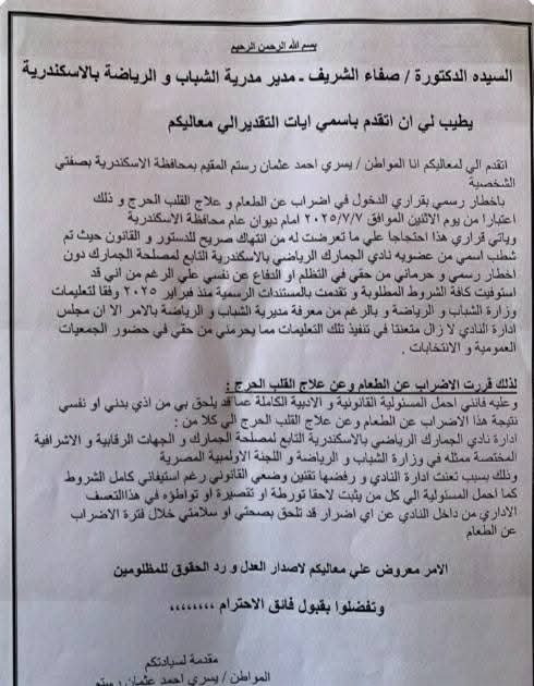 وأضاف: بدأت الأزمة حينما فوجئنا عام 2021 بعملية تلاعب وشطب جماعي لنا من عضوية النادي، دون أي سند وبدون إخطارنا رسميا بذلك، بالرغم من سدادنا الاشتراكات السنوية بشكل رسمي وفي أوقاتها المحددة، وعندما سألنا عن صورة قرار الفصل وأسبابه ولماذا لم يتم اخطارنا بالقرار في حينه ولم نتلق أي رد، لذلك قمنا بتحرير محضر إداري رقم 4411 قسم العطارين بتاريخ 18 سبتمبر 2021 لإثبات الحالة، ولكن مديرية الشباب والرياضة لم تحرك ساكنا.
