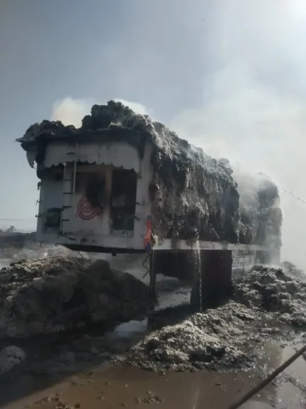 وعلى الفور، انتقلت قوات الحماية المدنية والإطفاء، برفقة ضباط المركز وسيارة إسعاف، إلى موقع البلاغ. وبالفحص والمعاينة، تبين أن الحريق بمقطوره جرار محمله قطن بمدخل درنكه من ناحية الهضبه رقم الجرار ٩٧٣٤ ي ص س، ورقم المقطورة ٥١٩٤ ي ب ع.