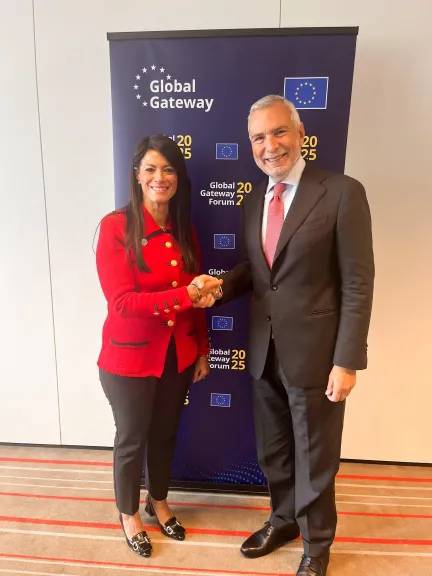 خلال فعاليات النسخة الثانية من منتدى البوابة العالمية 2025، المنعقد بالعاصمة البلجيكية بروكسل، التقت الدكتورة رانيا المشاط، وزيرة التخطيط والتنمية الاقتصادية والتعاون الدولي، ستيفانو سانينو، المدير التنفيذي لإدارة الشرق الأوسط وشمال أفريقيا والخليج بالمفوضية الأوروبية، حيث شهد اللقاء مباحثات حول تطورات تفعيل ضمانات الاستثمار الأوروبية بقيمة 1.8 مليار يورو.