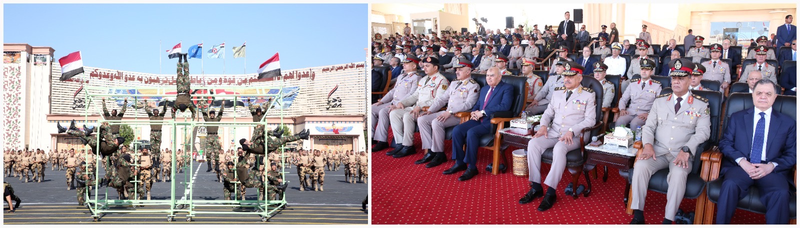 بدأت مراسم الإحتفال بعرض المهارات الرياضية وفنون الدفاع عن النفس والقتال المتلاحم والتى عكست الكفاءة البدنية والقتالية والمهارة العالية التى إكتسبها الطلبة طوال مدة دراستهم بالكليات العسكرية.