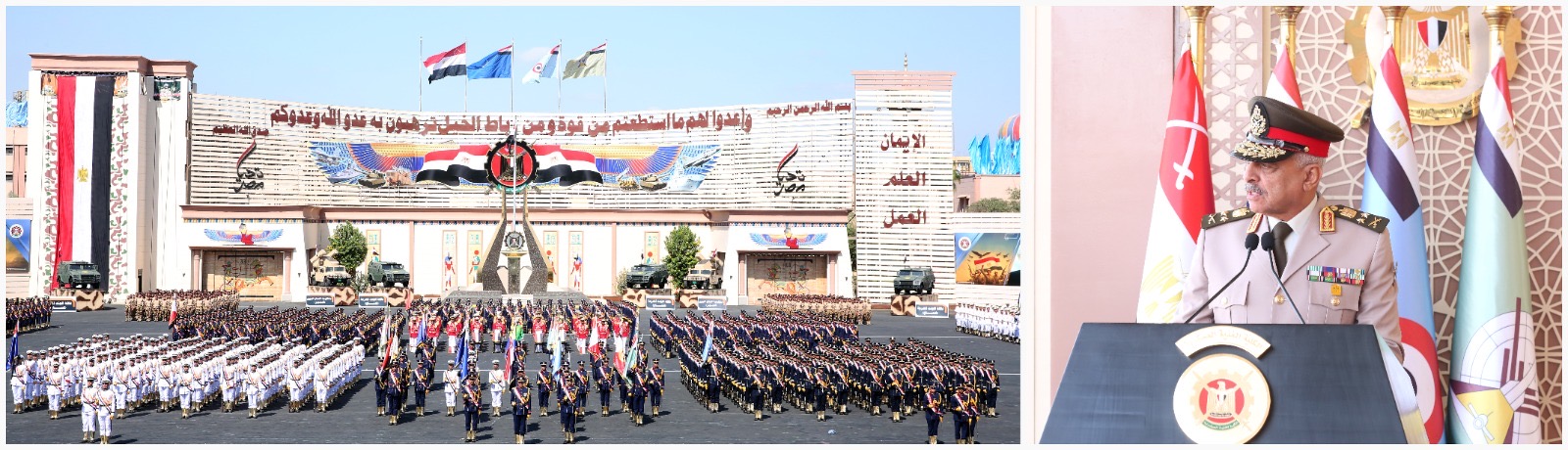 وألقى الفريق أشرف سالم زاهر مدير الأكاديمية العسكرية المصرية كلمة أشار خلالها إلى حرص القيادة العامة للقوات المسلحة على توفير كافة الإمكانات العلمية والتدريبية بالأكاديمية لتخريج أجيالٍ جديدة من الضباط القادرين على حماية الوطن ، مشيراً إلى ضرورة الحفاظ على ما إكتسبوه من إنضباط ذاتى وكفاءة تدريبية متميزة لتظل القوات المسلحة على أتم الجاهزية والإستعداد للزود عن ثرى مصر المقدس .