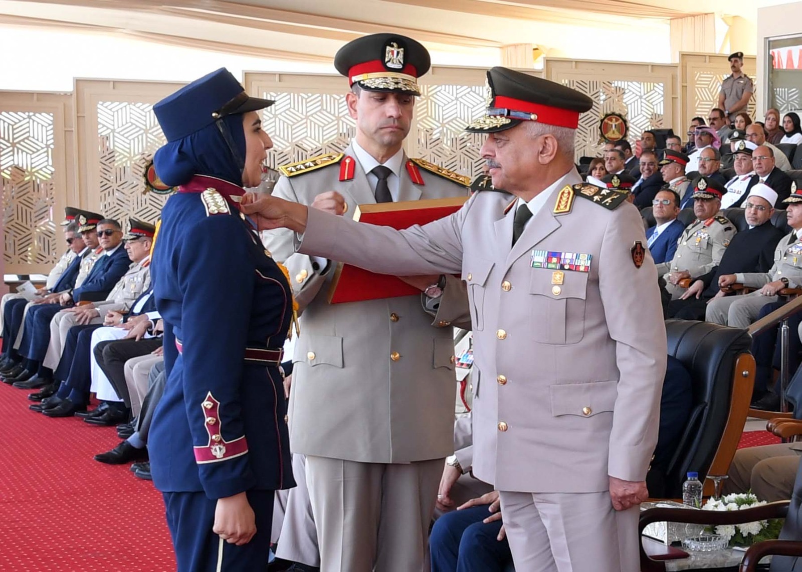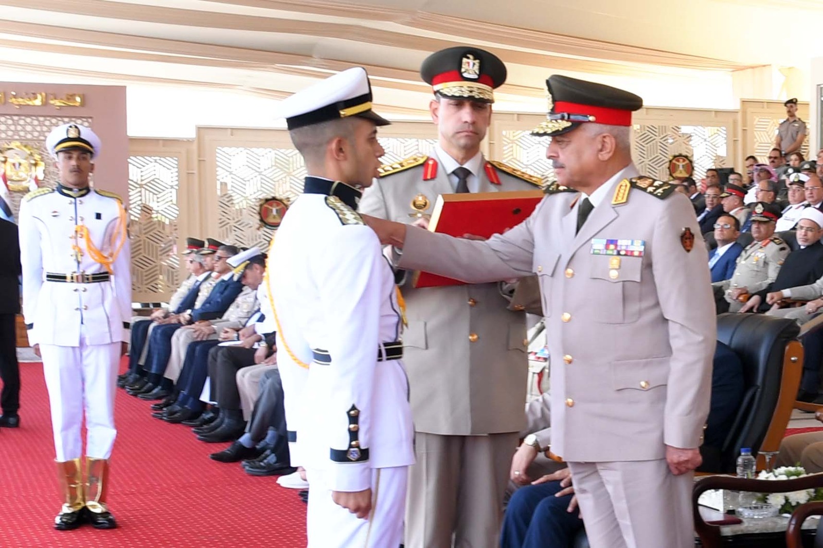 وذلك بحضور عدد من الوزراء والفريق أحمد خليفة رئيس أركان حرب القوات المسلحة والفريق أول ركن صدام حفتر نائب القائد العام للجيش الوطني الليبي وعدد من المحافظين وقادة الأفرع الرئيسية وعدد من قادة القوات المسلحة والملحقين العسكريين ورؤساء الجامعات والشخصيات العامة والإعلاميين وأسر الخريجين.