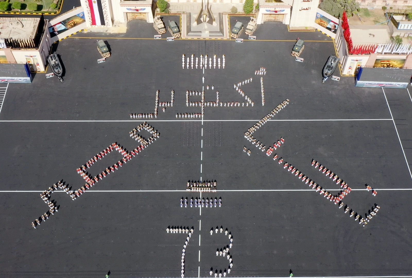 كما قدموا عروضا لعدد من الأغاني الوطنية ، وإختتمت العروض بالعرض العسكرى شارك فيه مجموعات من طلبة الكليات العسكرية يتقدمهم حملة الأعلام ، وعزفت الموسيقات العسكرية سلام الشهيد تكريماً لروح شهداء الوطن الأبرار .