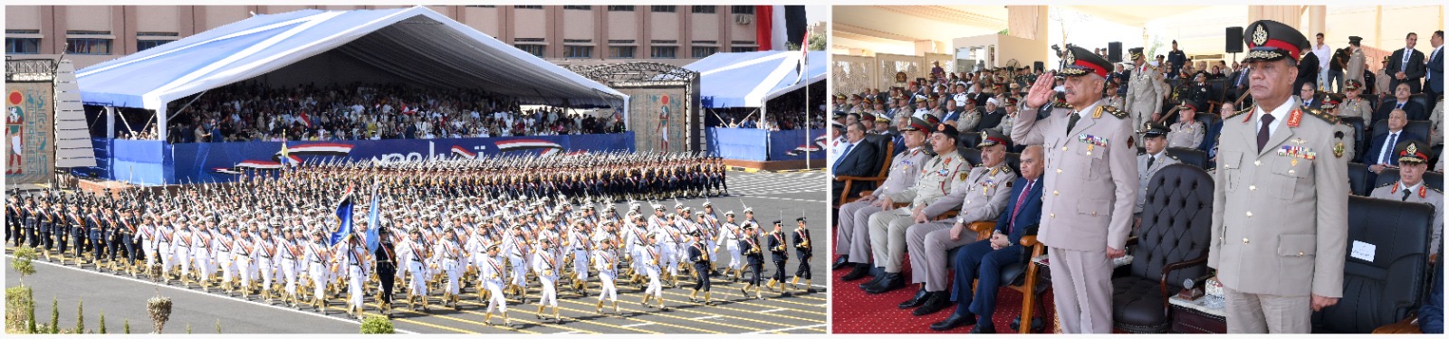 أعقبها إعلان رئيس هيئة تدريب القوات المسلحة نتيجة التخرج ، ثم جرت مراسم تسليم وتسلم القيادة من الخريجين إلى الدفعات الجديدة من طلبة الكليات العسكرية ، وأعلن مدير إدارة شئون ضباط القوات المسلحة قرار التعين ومنح الأنواط لأوائل الخريجين.
