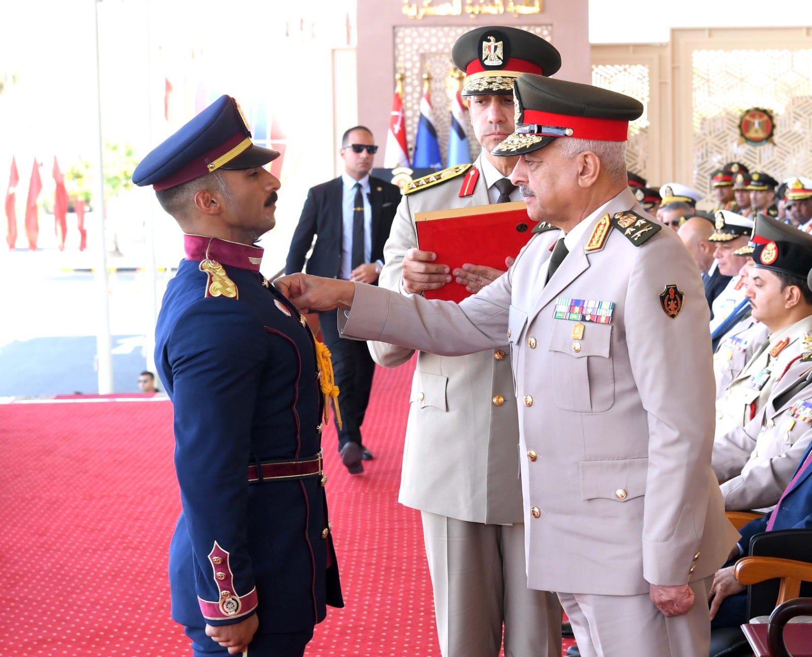 وقام الفريق أول عبد المجيد صقر بتقليد أوائل الخريجين نوط الواجب العسكرى من الطبقة الثانية الذى صدق على منحه لهم الرئيس عبد الفتاح السيسى رئيس الجمهورية القائد الأعلى للقوات المسلحة تقديراً لآدائهم المتميز خلال فترة الدراسة وردد الخريجون يمين الولاء .