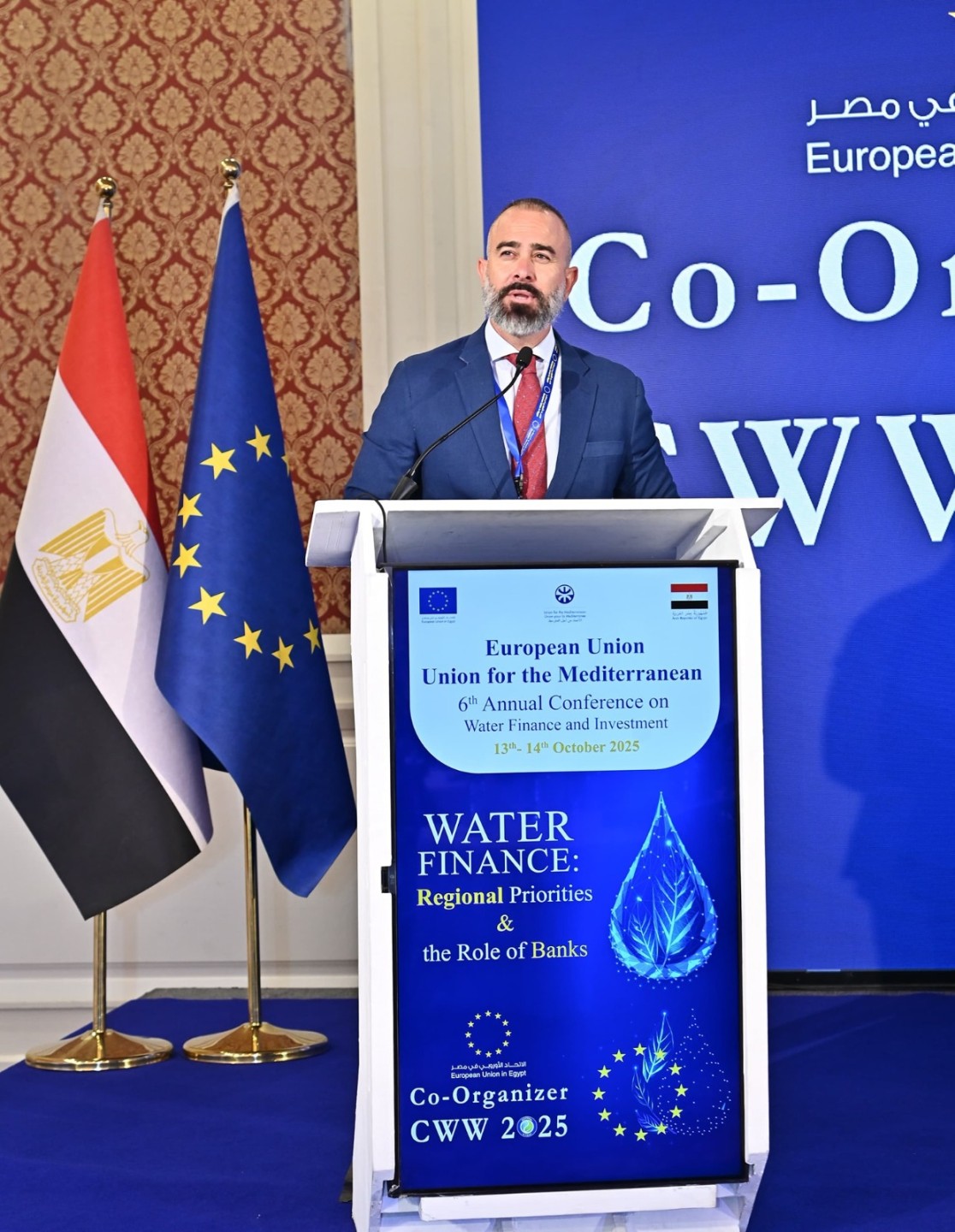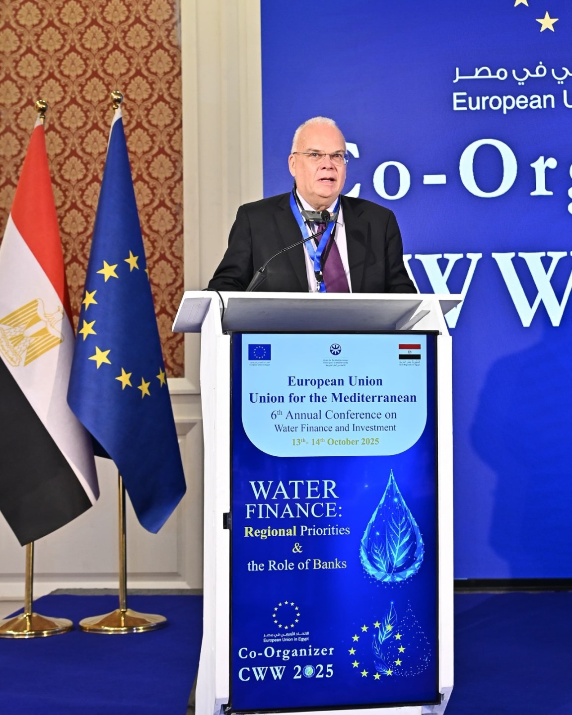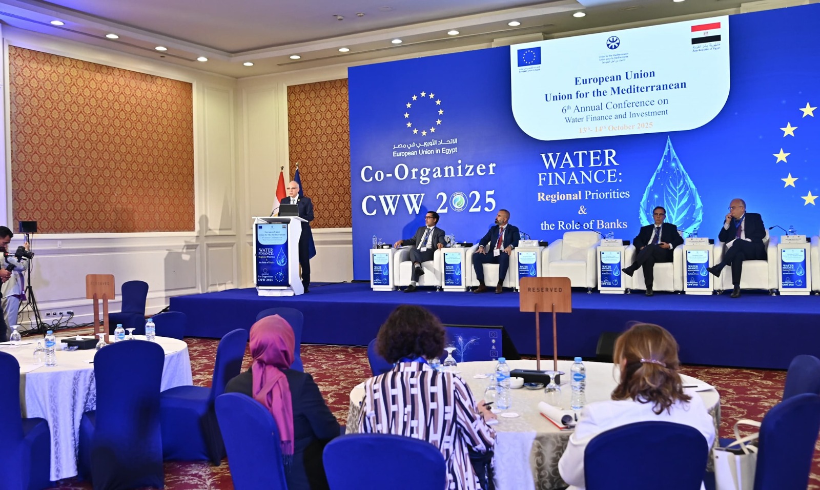 شارك الأستاذ الدكتور هانى سويلم وزير الموارد المائية والرى فى "المؤتمر السنوي السادس للتمويل والاستثمار فى قطاع المياه"، والمنعقد تحت عنوان "تمويل المياه .. الأولويات الإقليمية ودور البنوك"، بتنظيم مشترك من وزارة الموارد المائية والري والإتحاد الأوروبي والإتحاد من أجل المتوسط .