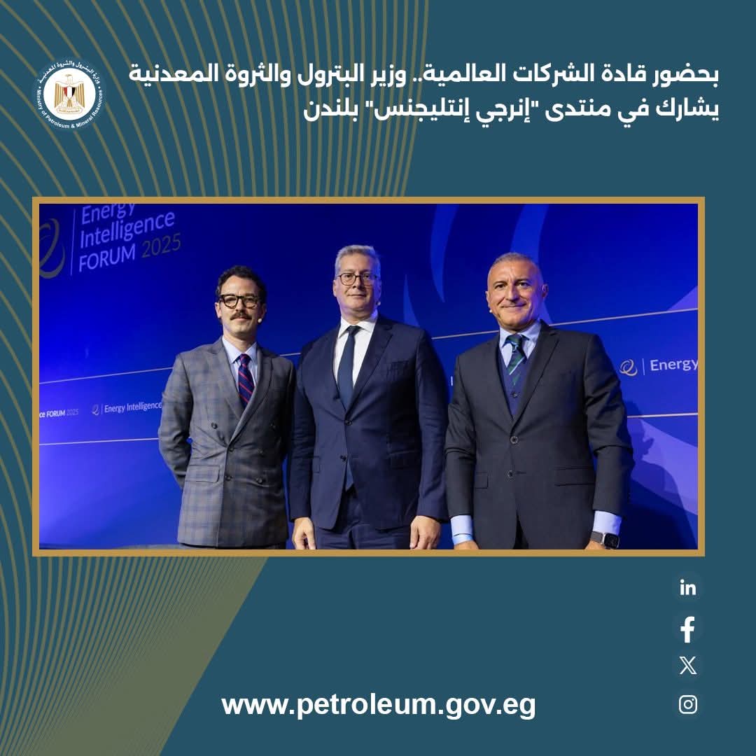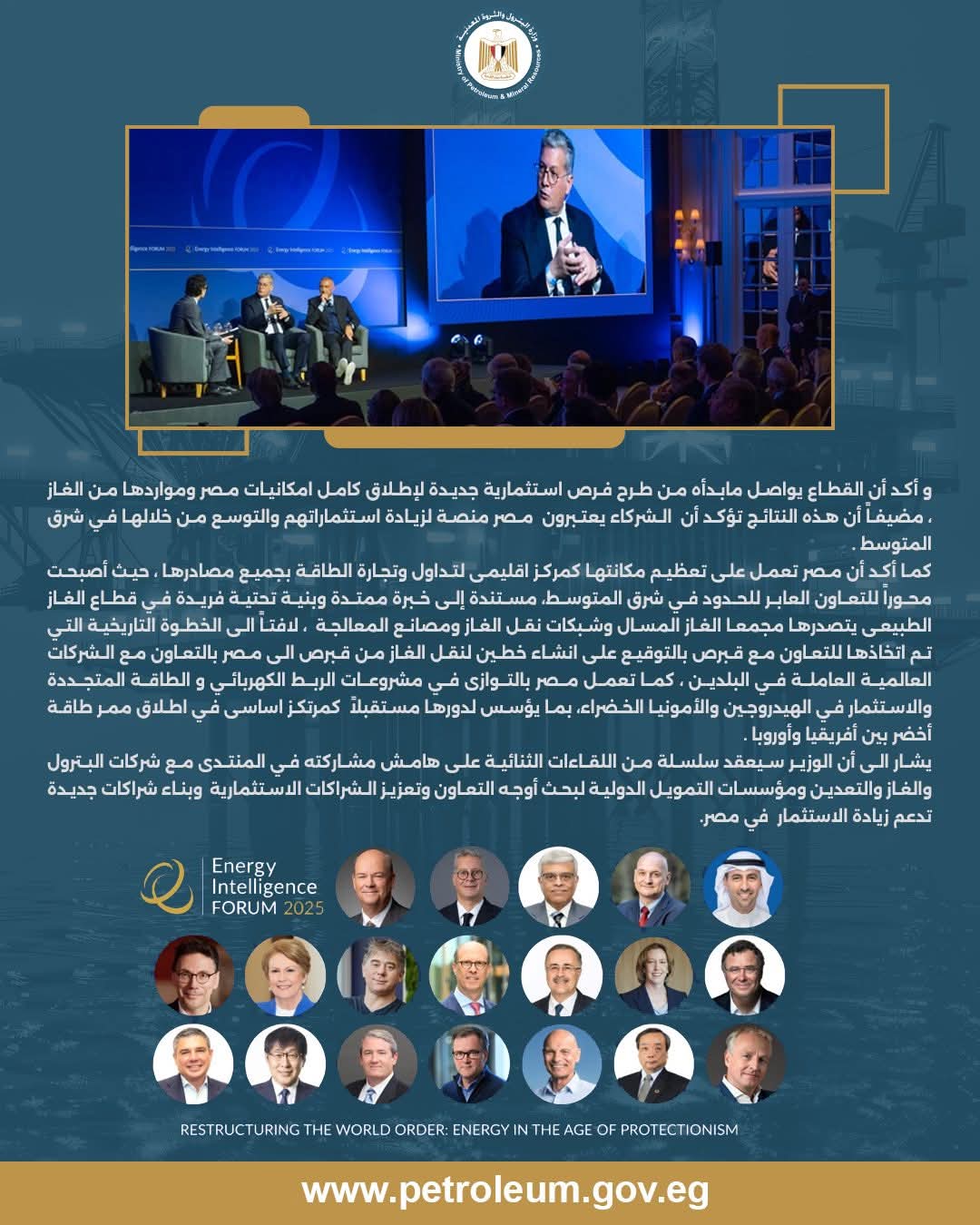 وزير البترول والثروة المعدنية يشارك في منتدى ”إنرجي إنتليجنس” بلندن