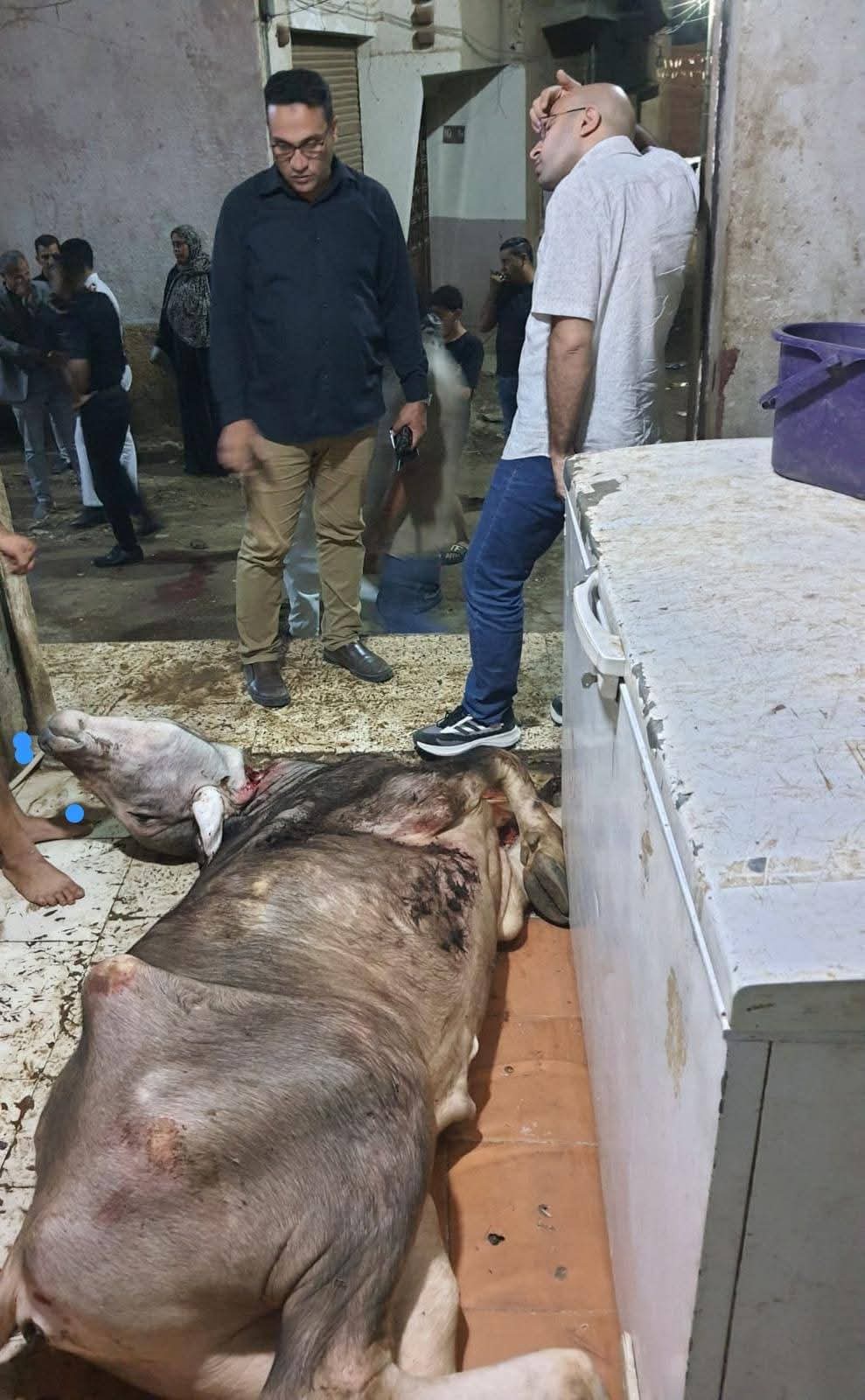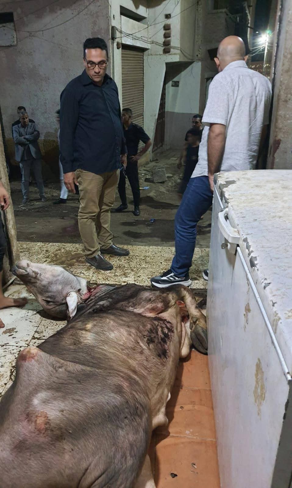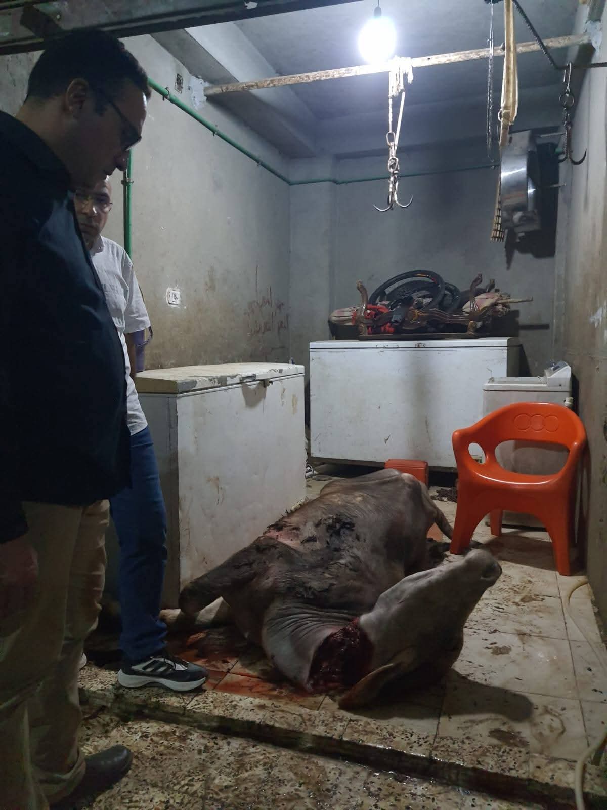 ضبط جزار يذبح عجلاً نافقًا داخل سلخانة مخالفة بشبين الكوم