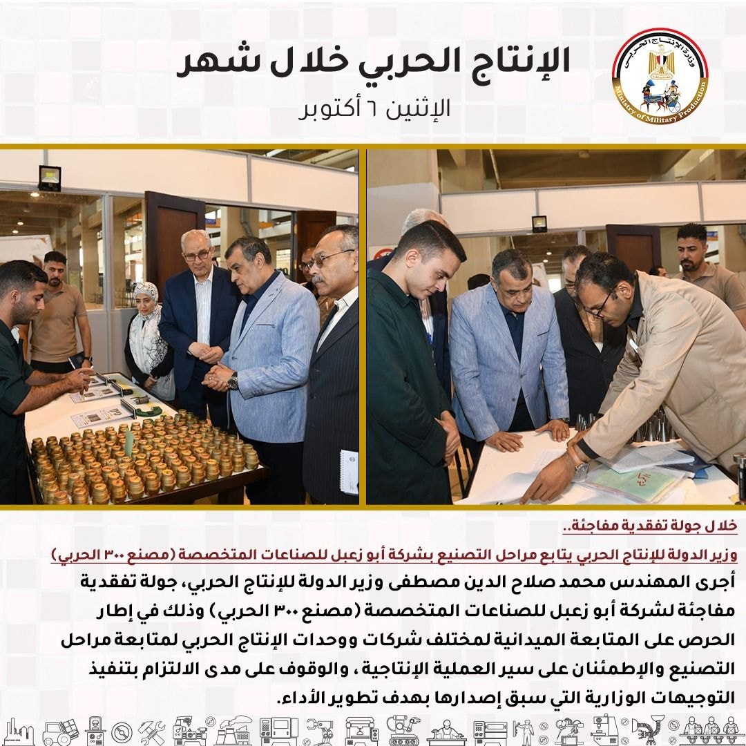 وزير الدولة للإنتاج الحربي يتابع مراحل التصنيع بشركة أبو زعبل للصناعات المتخصصة (مصنع 300 الحربي)