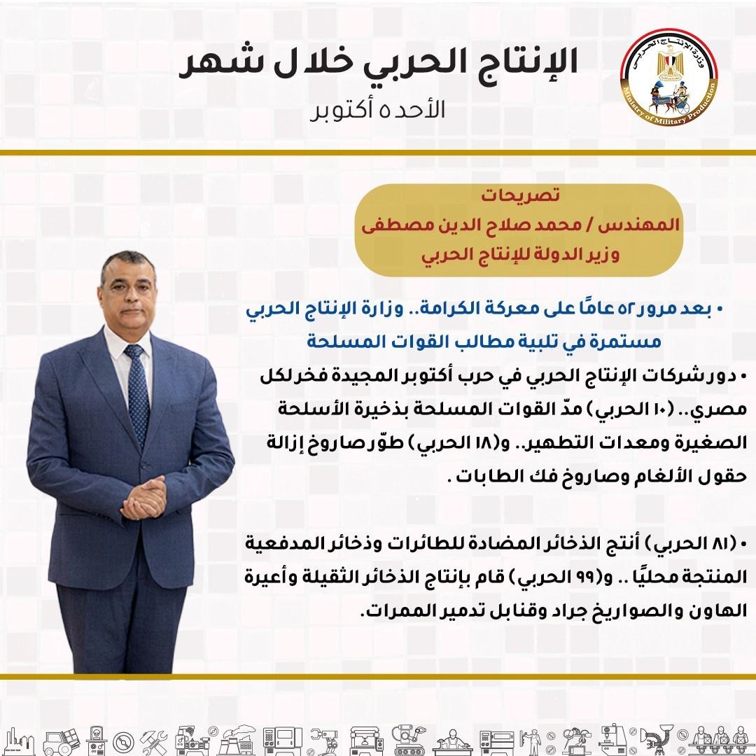 دور شركات الإنتاج الحربي في حرب أكتوبر المجيدة فخر لكل مصري.. (10 الحربي) مدّ القوات المسلحة بذخيرة الأسلحة الصغيرة ومعدات التطهير.. و(18 الحربي) طوّر صاروخ إزالة حقول الألغام وصاروخ فك الطابات