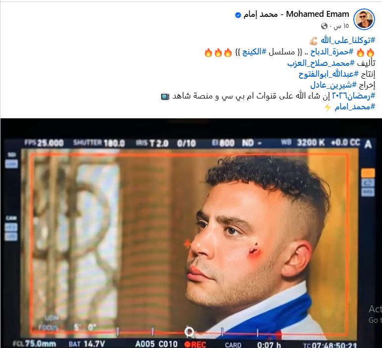 ونشر محمد امام الصورة عبر حسابه الرسمي انستجرام: توكلنا على الله، حمزة الدباح مسلسل الكينج، من تأليف محمد صلاح العزب، وإخراج شيرين عادل، ومن المقرر عرضه على قنوات MBC ومنصة شاهد.