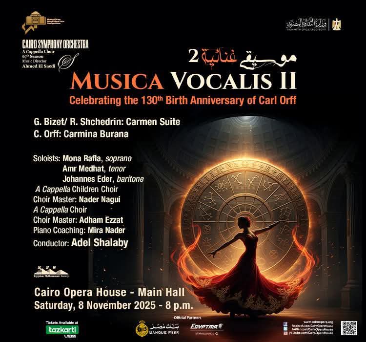 الموسيقى الغنائية للسيمفونى تحتفل بذكرى ١٣٠ عام على ميلاد الألماني كارل اورف بدار الأوبرا المصرية
