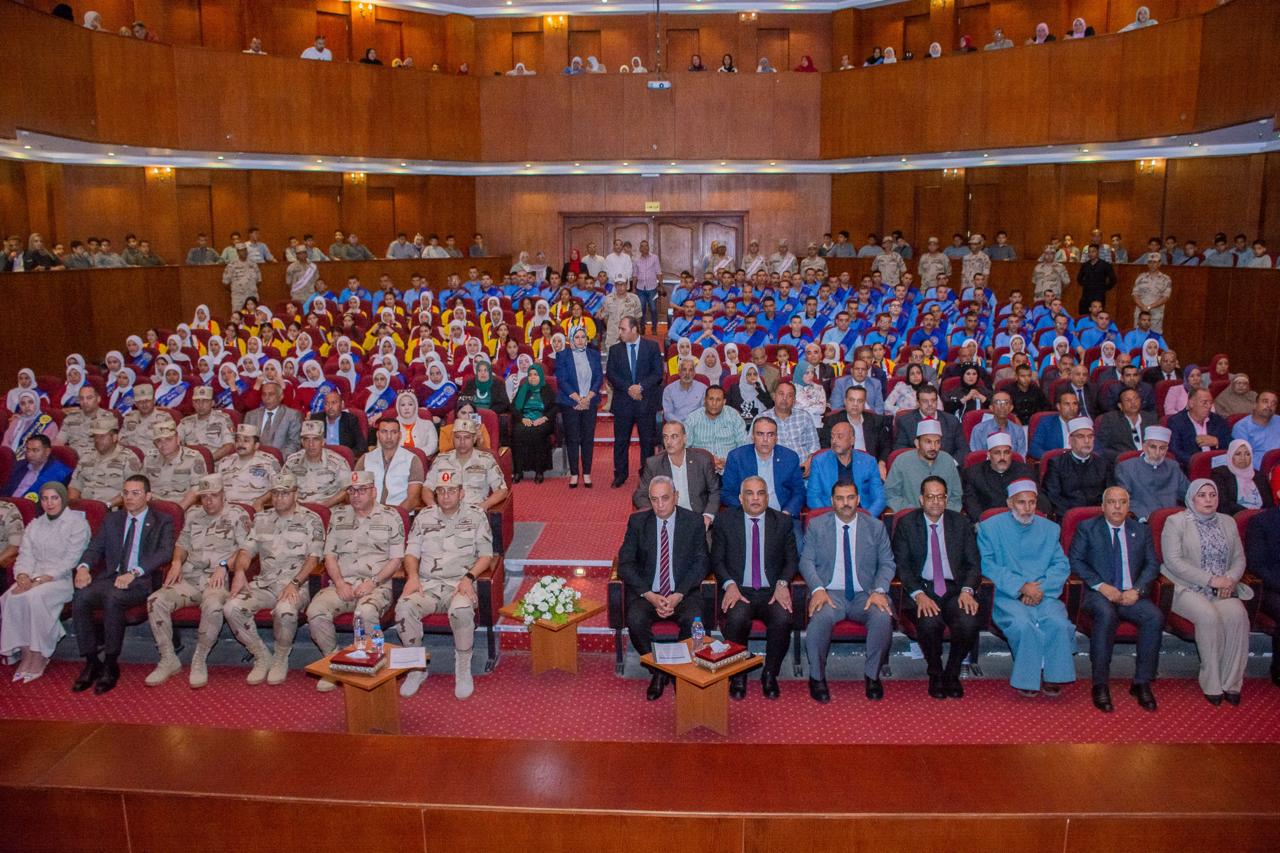 وخلال تلك الفعاليات نقل اللواء أح هشام حسنى حسن قائد قوات الدفاع الشعبي والعسكري تحيات وتقدير الفريق أول عبد المجيد صقر القائد العام للقوات المسلحة وزير الدفاع والإنتاج الحربى والفريق أحمد خليفة رئيس أركان حرب القوات المسلحة للحضور ، مؤكدا حرص القوات المسلحة على توعية الشباب المصرى بحجم التحديات الراهنة وإرتباطها بالمتغيرات المستمرة على الصعيدين الدولى والإقليمى ، فضلاً عن دور الدولة المصرية فى مواجهة تلك التحديات وتوفير الحياة الكريمة للمواطنين .