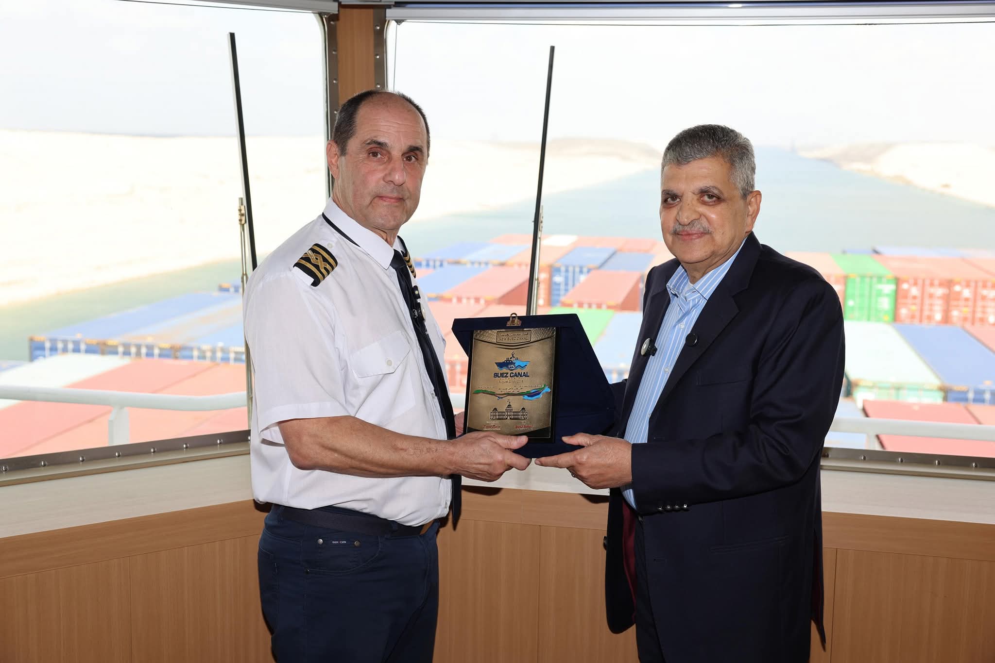 وخلال تواجده على متن السفينة حرص الفريق أسامة ربيع رئيس الهيئة على الترحيب بطاقم السفينة والتعرف على انطباعاتهم عن العبور بمنطقة البحر الأحمر وباب المندب، و مستوى الخدمات الملاحية المُقدمة من القناة، حيث كان في استقباله السيد طارق زغلول الرئيس التنفيذي لمجموعة CMA CGM في مصر والسودان والسيد عمرو الشافعي مدير قطاع العمليات بالشركة .