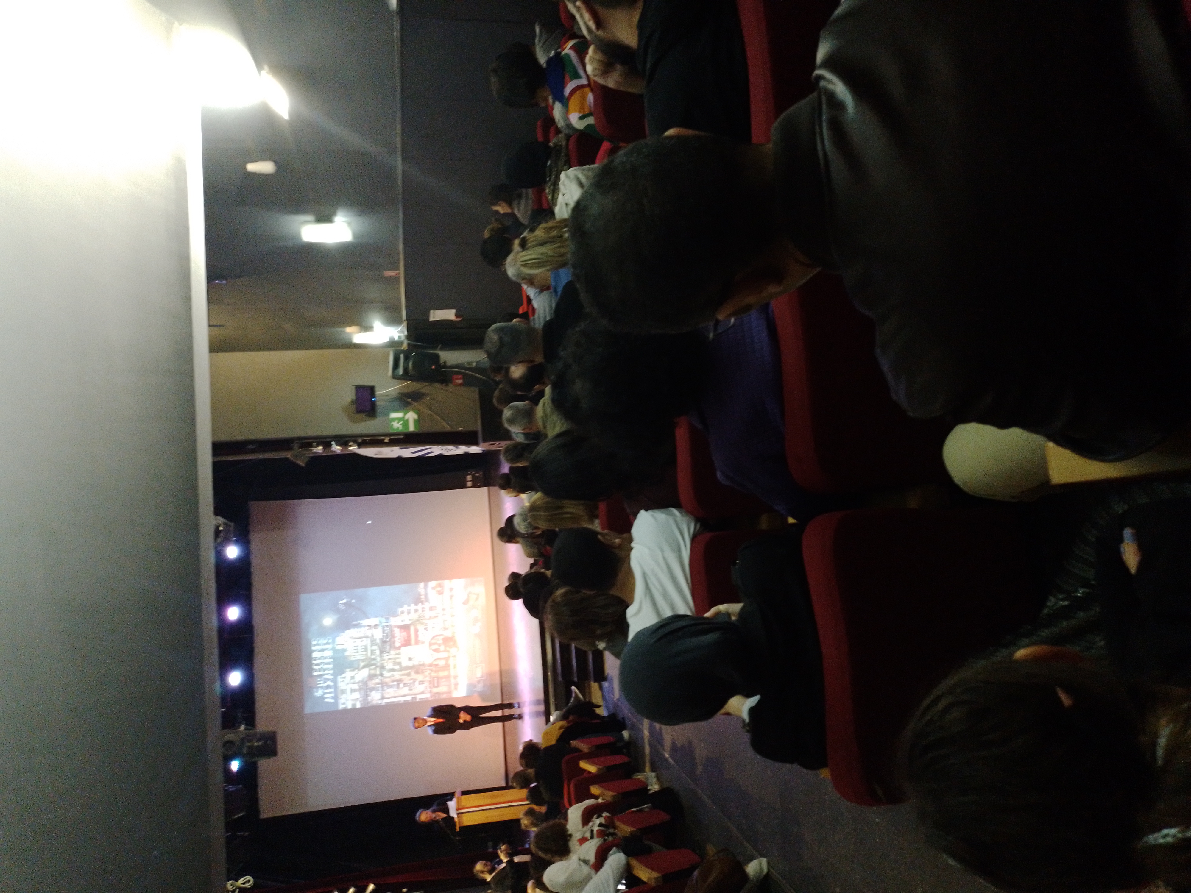 وعقب الحفل تم عرض فيلم الإفتتاح وهو الفيلم الفرنسي" En fanfare" للمخرج الفرنسي إيمانويل كوركول ، ثم بعد العرض تم عقد مناقشة مع مخرج العمل وأيرين موسكارى .