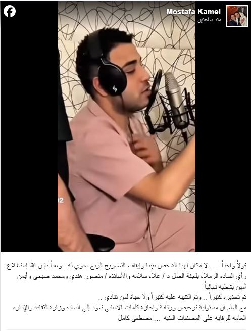 لا مكان له بيننا.. مصطفى كامل يوقف إسلام كابونجا عن الغناء ويدرس شطبه نهائيا
