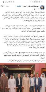 وخلال الزيارة نقل الشيخ عبد الله الحامد رسالة خاصة من الشيخ محمد بن زايد آل نهيان للنجم الكبير عادل إمام، مع تمنياته وتحياته بالصحة والعافية لزعيم الفن العربى.