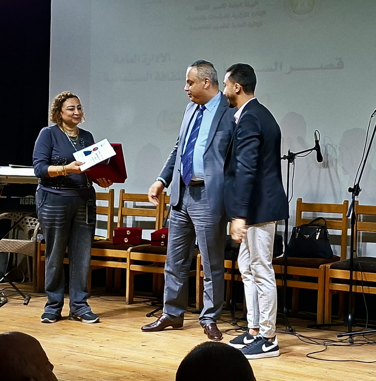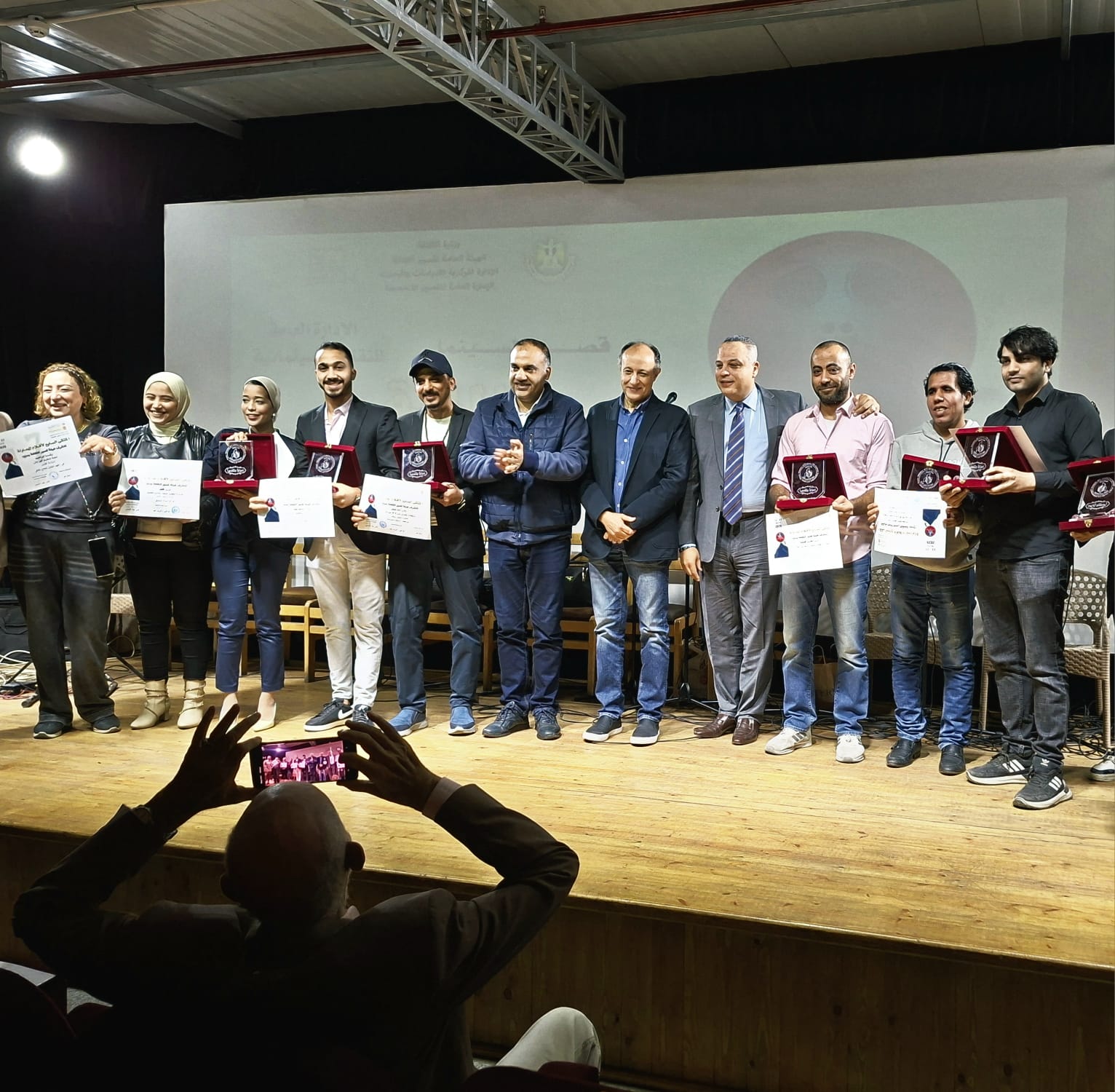 وفي نهاية الحفل صعد الفائزون لإلتقاط الصور التذكارية مع الفنان تامر عبدالمنعم مدير عام الإدارة العامة للثقافة السينمائية والأستاذة سهام بحر مدير قصر السينما.
