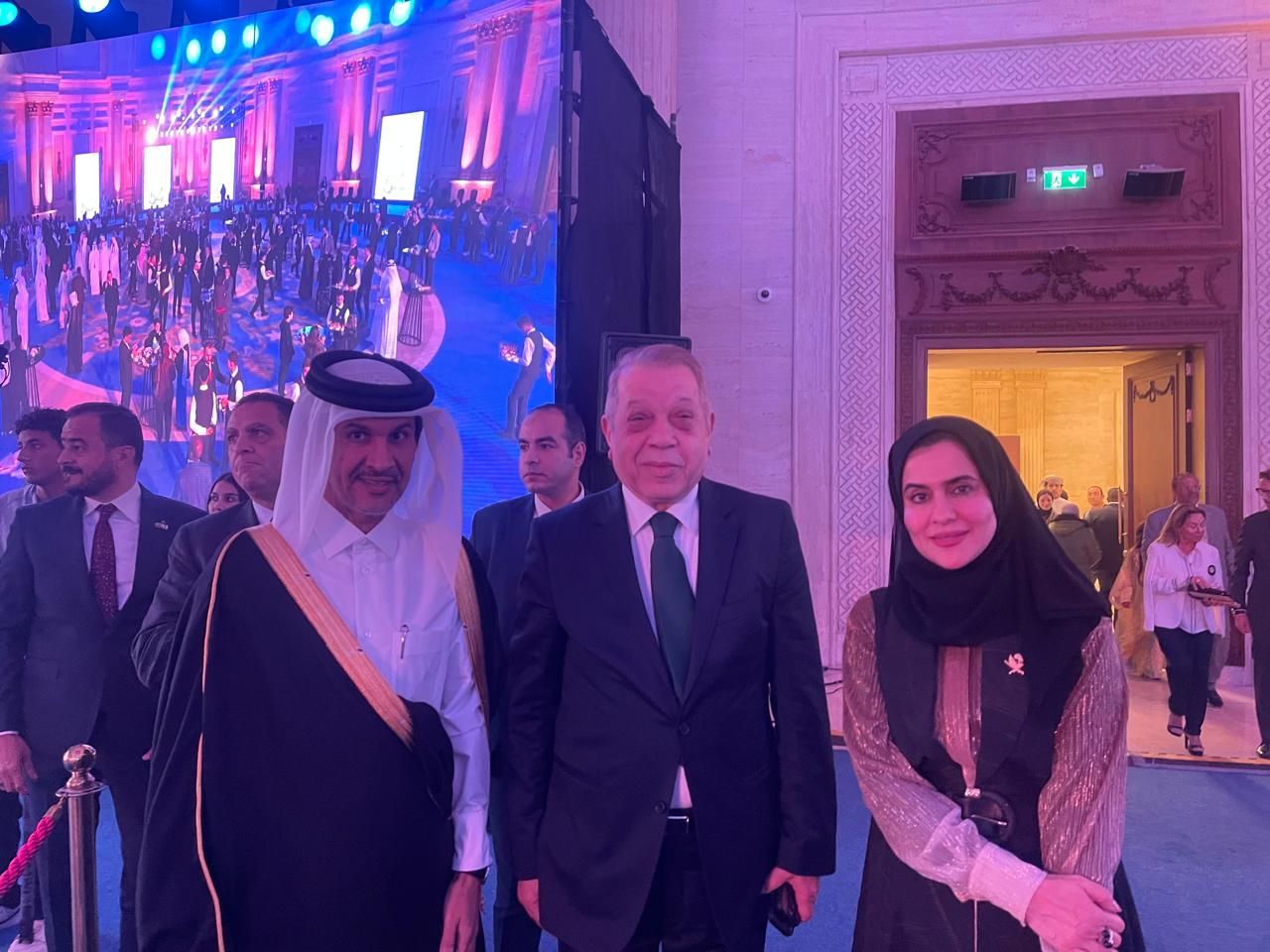شرشر يتوسط السفير جاسم بن عبد الرحمن آل ثاني سفير قطر والسفيرة مريم الشيبي نائب السفير