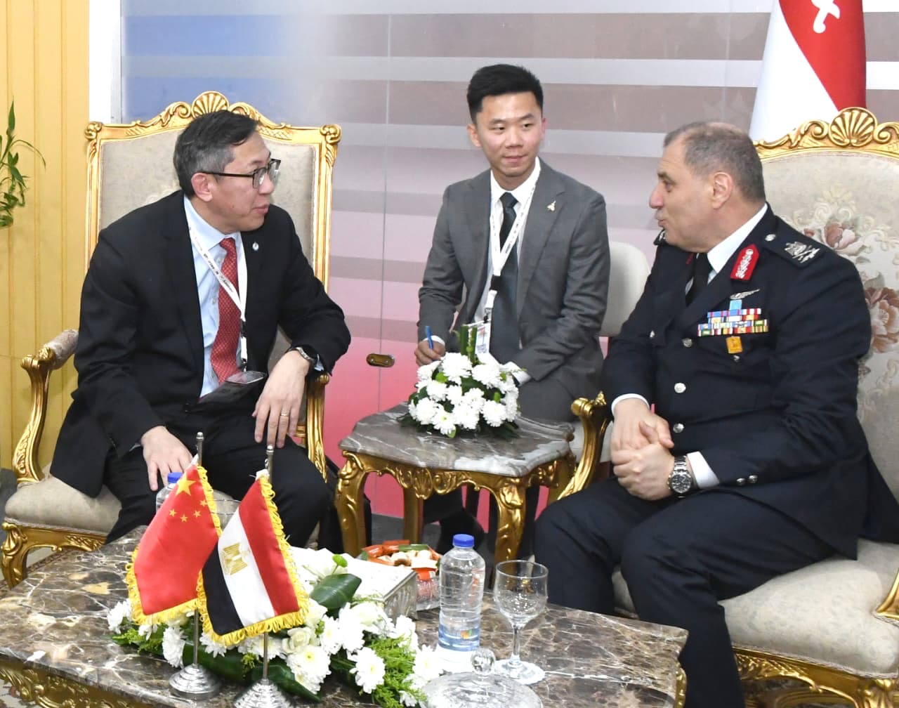 كما التقى اللواء طيار أح عمرو عبد الرحمن صقر قائد القوات الجوية مع اللواء دكتور ناصر النعيمى الأمين العام لمجلس التوازن الدفاعى الإماراتى ، وفروكلين اليكس نائب رئيس الهيئة الفيدرالية للتعاون العسكرى الفني الروسى ، والعميد يانغ جيه قانع نائب مدير إدارة التعاون التكنولوجي والتسليح لهيئة تطوير الأسلحة والمعدات الصينية ، ومسئولى شركة لوكهيد مارتن الأمريكية ، ومسئولى شركة كاتيك الصينية .