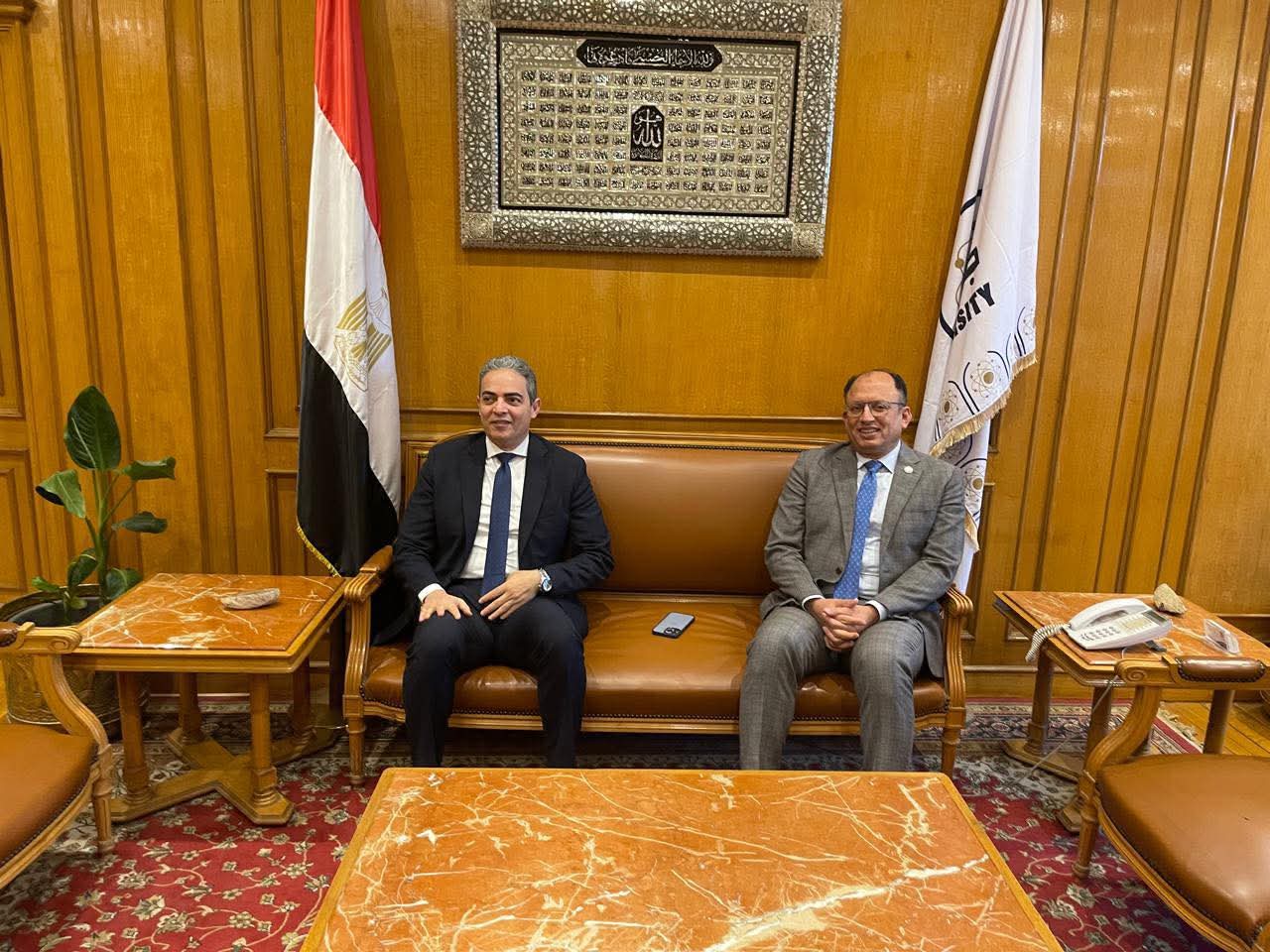 تقديرًا لأسهاماته في دعم الشباب... رئيس جامعة حلوان يكرم نقيب الإعلاميين بمنحه درع الجامعة