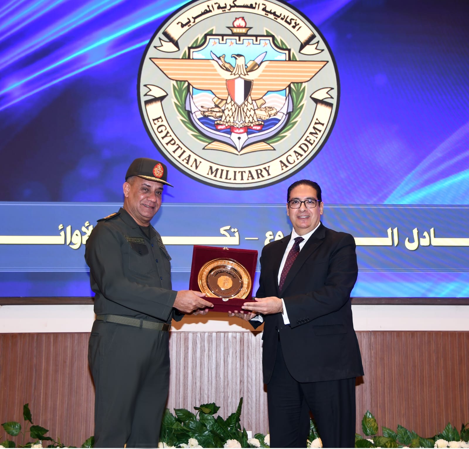 كما ألقى الفريق أشرف سالم زاهر مدير الأكاديمية العسكرية المصرية كلمة أشار خلالها إلى أن الأكاديمية تُسخِر كافة جهودها لإعداد أجيال جديدة قادرة على آداء مهامهم التى سيكلفون بها بكل تفانٍ وإخلاصبمختلف التخصصات وأختتمت مراسم الإحتفال بتبادل الدروع وتكريم المتميزين فى الدورة.