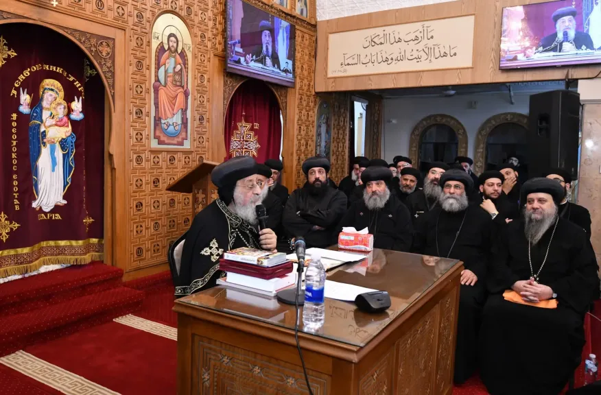 اختتم قداسة البابا تواضروس الثاني، سلسلة عظاته الأسبوعية «أصحاحات متخصصة» في اجتماع الأربعاء، متناولا موضوع «لقاء الفرح – الجزء الثالث»، من خلال تأمل روحي في لقاء السيدة العذراء بأليصابات كما ورد في إنجيل لوقا (١: ٣٩–٥٦).