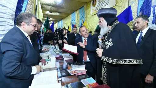 تفقد قداسة البابا معرض دار الكتاب المقدس في السرادق المقام خارج الكنيسة،