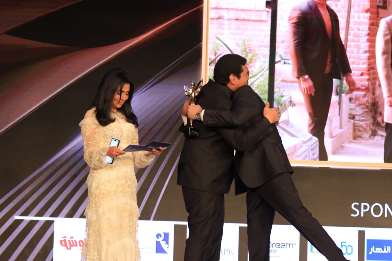 هذا ولقد قام بتسلم جائزة " أفضل تمثيل للنجم باسم سمرة كل من الإعلامية سهير جودة والنجم أحمد السقا الذى إحتفى باسم سمرة وإستقبله على المسرح بالأحضان والقبلات معربا عن فرحته بتكريم صديق العمر .