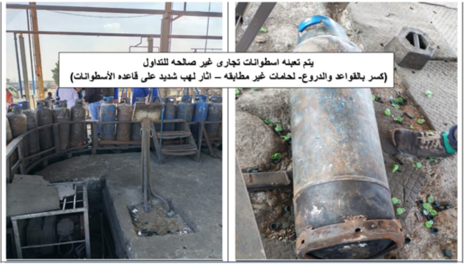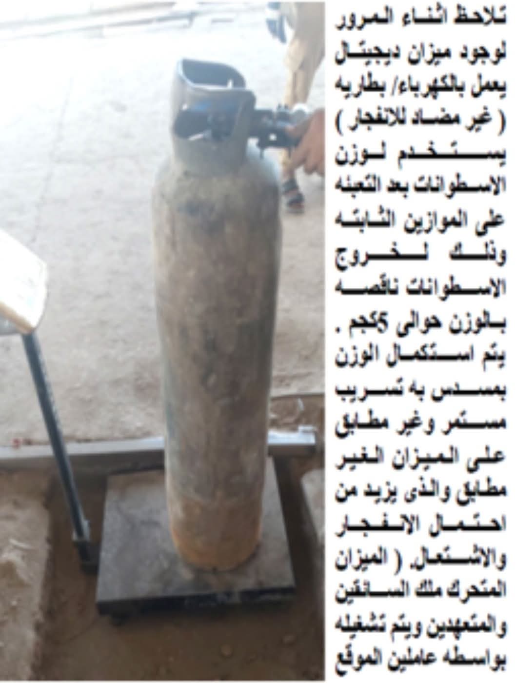 تم التفاعل مع الشكوى المقدمة ضد أحد مصانع تعبئة أسطوانات البوتاجاز بالجيزة وإجراء مراجعة شاملة على المصنع، وتبين وجود نقص في أوزان غالبية الأسطوانات المعدة للبيع للجمهور عن الأوزان الرسمية ، وقصور في إجراءات الفرز واستبعاد الأسطوانات التالفة غير الصالحة للتداول قبل التعبئة، والسماح لسيارات غير صالحة فنياً ومتهالكة بالدخول وتحميل الأسطوانات لتوزيعها على المخازن بما يمثل خطورة شديدة، كما تبين أن منظومة الإطفاء والإنذار بحاجة للصيانة، وتم اتخاذ الإجراءات اللازمة بالتنسيق مع الشركة المعنية بتشغيل المصنع، وتحرير محضر بالمخالفات.
