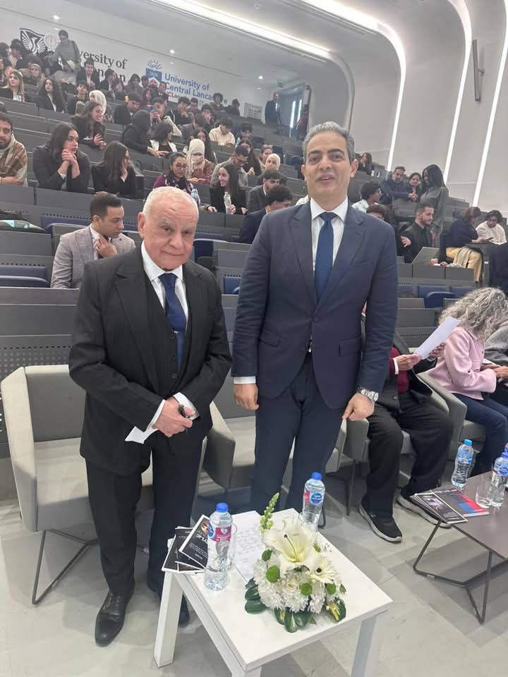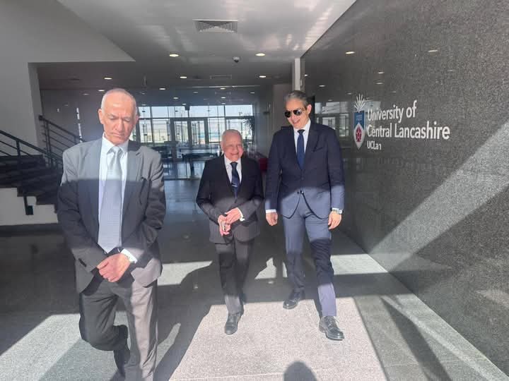 وكان في استقبال نقيب الإعلاميين الأستاذ الدكتور محمود هاشم عبد القادر رئيس مجلس أمناء الجامعات الأوروبية في مصر، والأستاذة الدكتورة نجوى بدر رئيس جامعة شرق لندن – فرع القاهرة، والدكتورة ميرال صبري رئيس برنامج الإعلام وصناعة الأفلام بجامعة شرق لندن، وعدد من أعضاء هيئة التدريس.