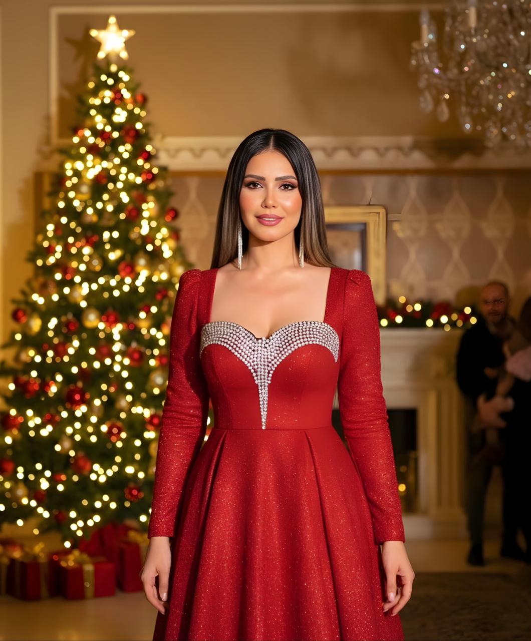 وجاءت الصور بأسلوب أنيق وبسيط، حيث لفتت إطلالة ايناس الأنظار، وبدت التفاصيل منسجمة مع أجواء الكريسماس، ما أضفى لمسة من الرقي والبهجة على المشهد.