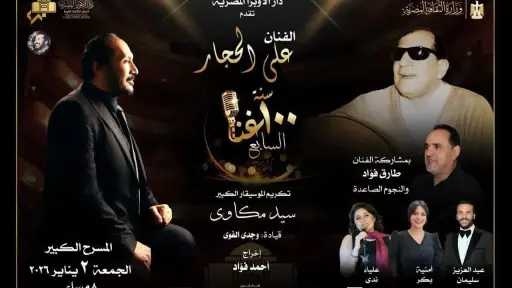 كما واصلت الأوبرا التعاون مع النجم علي الحجار من خلال المشروع الفنى 100 سنة غنا، الذى يضم سلسلة عروض توثق تاريخ الموسيقى والغناء العربي وتطوره خلال القرنين التاسع عشر والعشرين، متناولة أبرز الموسيقيين في تلك الفترة، في قالب يجمع بين الغناء والدراما والاستعراض، بهدف تأكيد ريادة مصر الفنية وتعريف الأجيال الجديدة بالتراث، ورصد التحولات الاجتماعية والسياسية عبر الموسيقى والغناء.